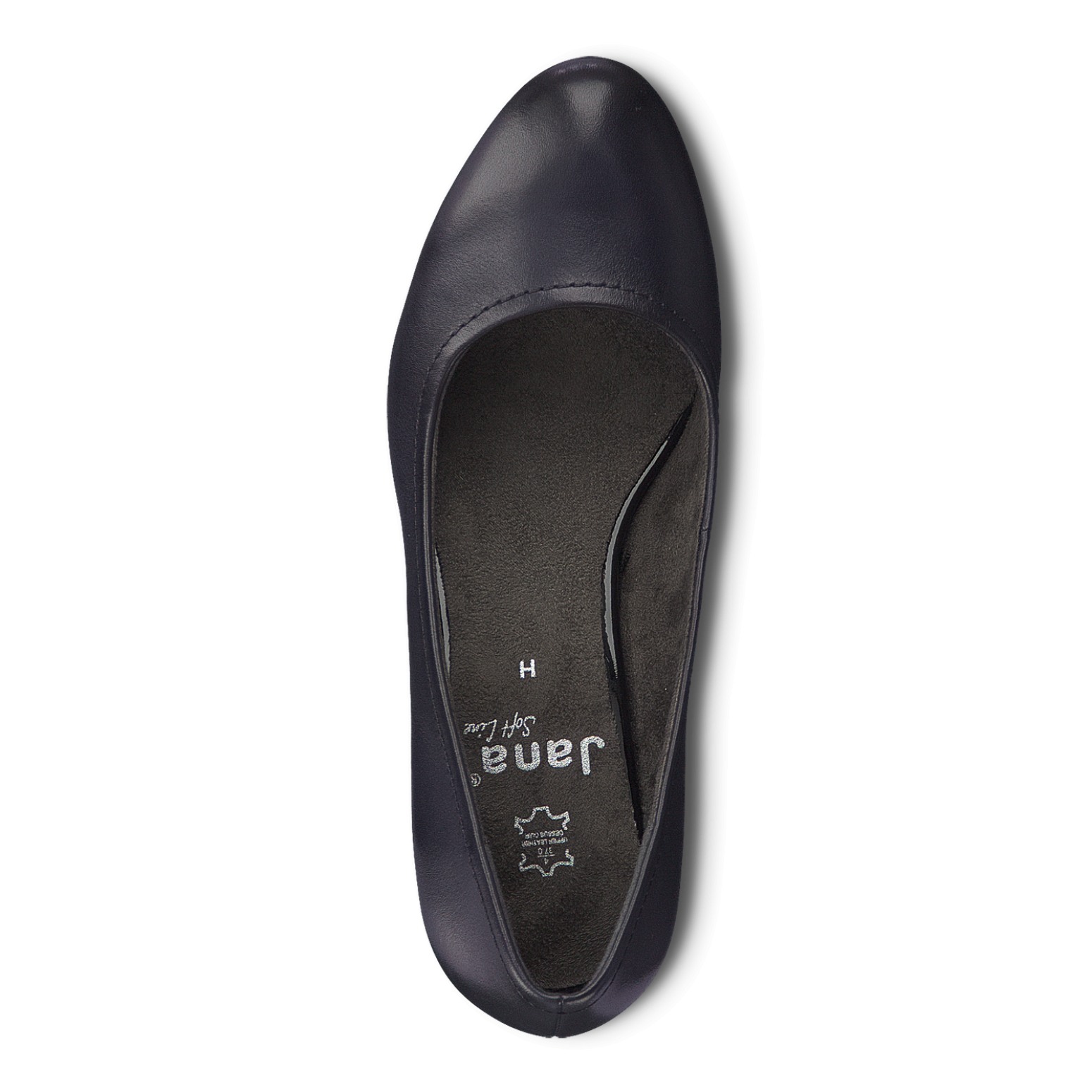 Dámské lodičky značky JANA s hladkým povrchem z přírodní kůže. Tyto boty by neměly chybět žádné ženě ve svém botníku. Díky jednoduchému střihu se Vám budou dobře ladit s Vaším outfitem. Uvnitř obuvi najdete pohodlnou stélku. Podešev je vyrobena z kvalitního syntetického materiálu, má jemný vzorek a stabilní podpatek s výškou cca 5,5 cm. Obuv šíře H (široká obuv). Tento model nabízíme i v další barevné variantě.