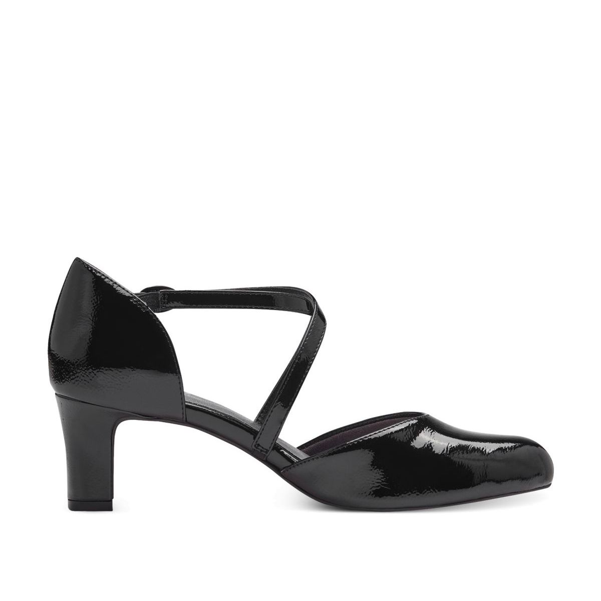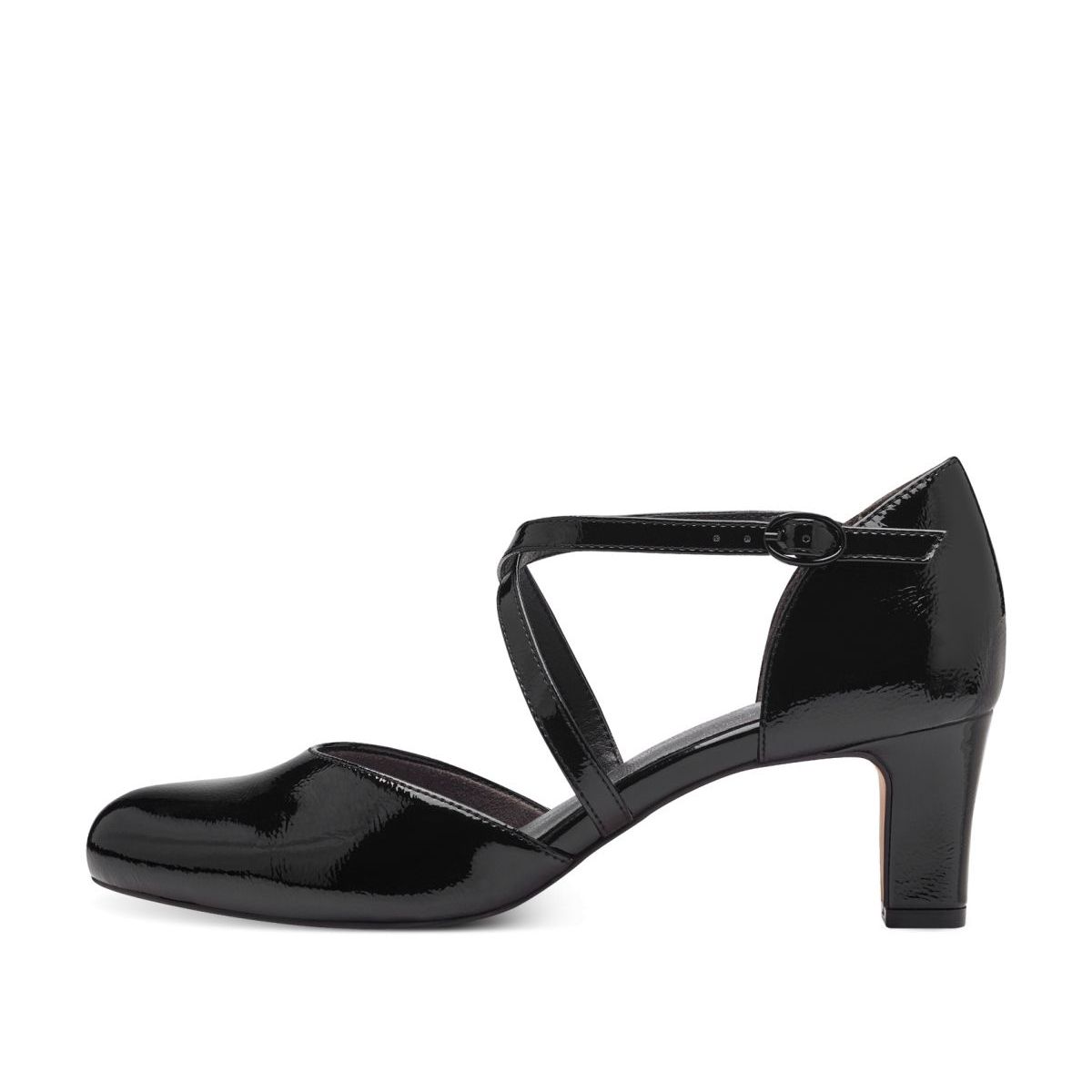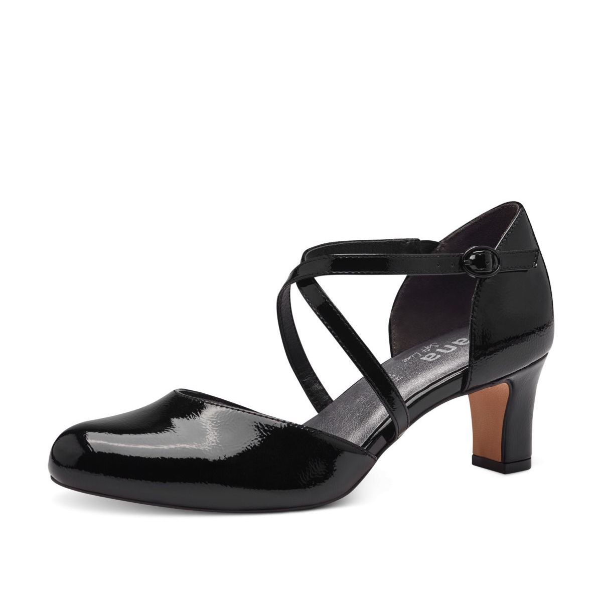 Detailní informace Hledáte elegantní boty do práce nebo na slavnostní příležitost? Tyto lodičky od značky Jana by mohly být ty pravé. Jsou v lesklém provedení, mají uzavřenou patu i špičku a na nártu jsou dva úzké překřížené pásky, které dodají tu správnou třešničku tomuto modelu. Zapínání si přesně upravíte dle svých potřeb díky přezce. Pohodlný podpatek a flexibilní podešev Vám dodají pocit pohodlí po celý čas nošení.