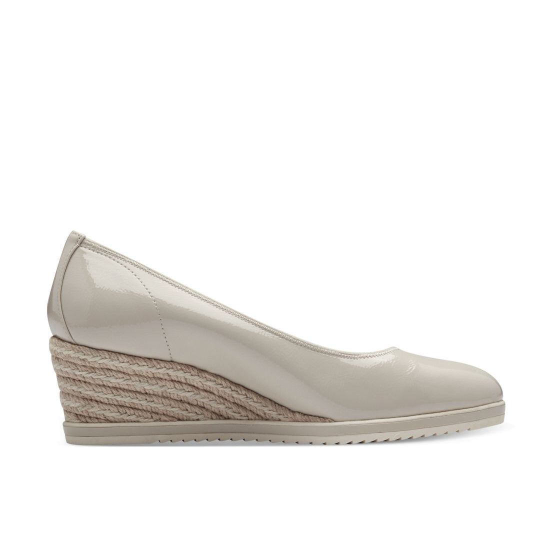 Tyto lodičky Tamaris, v lesklé béžové barvě, Vás nenechají bez povšimnutí. Mají kulatou špičku a pohodlný stabilní klínek s textilním zdobením, který je dominantou tohoto modelu. Vynosíte je k šatům, sukním, riflím i kalhotám. Ať už vyrazíte na letní akci nebo do práce, vždy budou ozdobou Vašeho outfitu. Tento model nabízíme i v další barevné variantě (platí do vyprodání zásob).