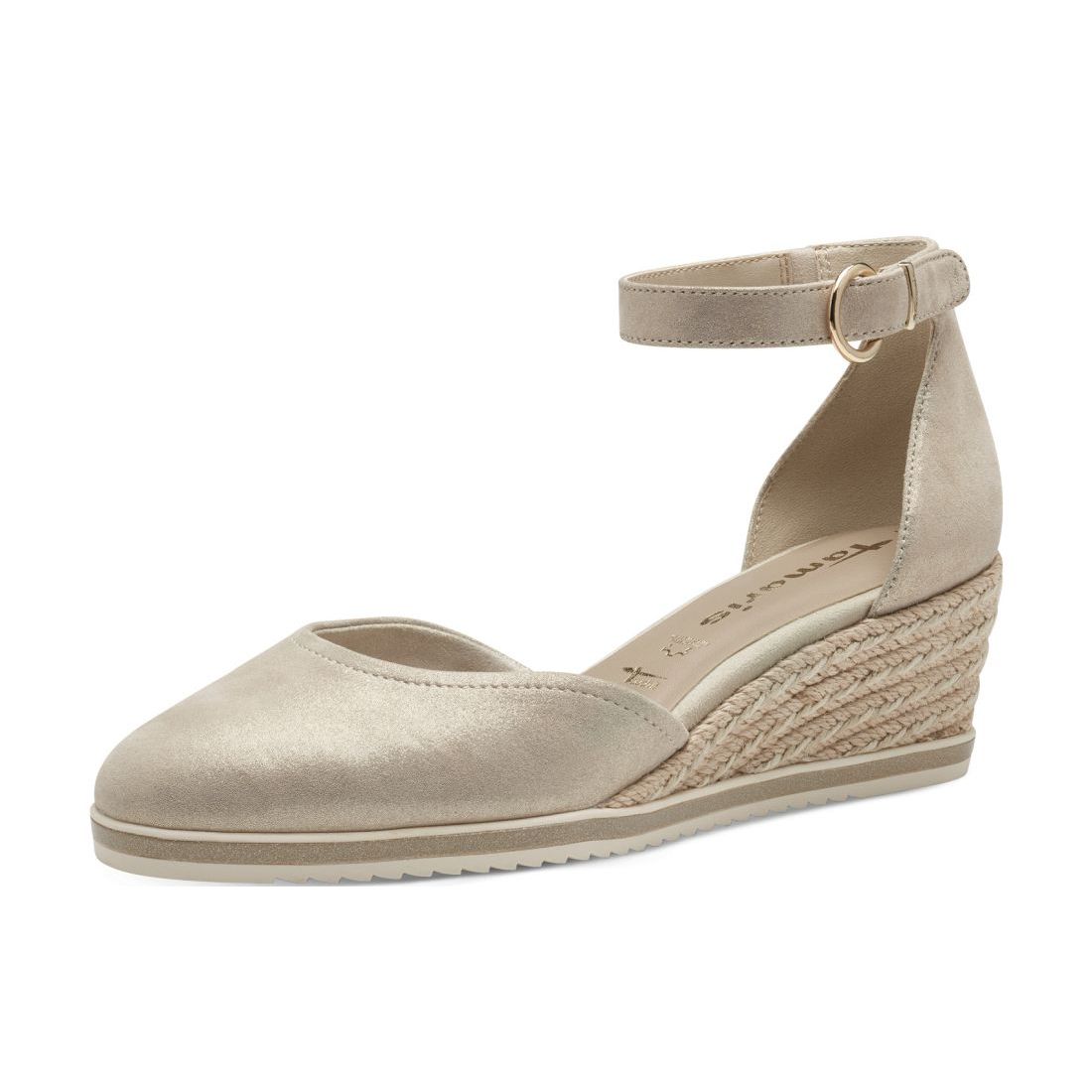 Detailní informace Elegantní dámské lodičky Tamaris na klínku s "vykrojeným" bokem. Svrchní materiál je z přírodní kůže. Správnou fixaci nohy Vám zajistí pásek kolem kotníku, který je navíc nastavitelný pomocí suchého zipu. Měkká Touch-it stélka zajistí Vašim chodidlům maximální pohodlí po celou dobu chůze. Klínek zajišťuje dokonalou stabilitu a navíc je velmi hezky zpracovaný v podobě proplétaného dekoru. Podpatek je vybaven technologií AntiSlide, která velmi snižuje riziko uklouznutí na kluzkém povrchu.