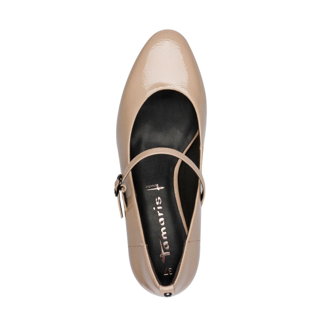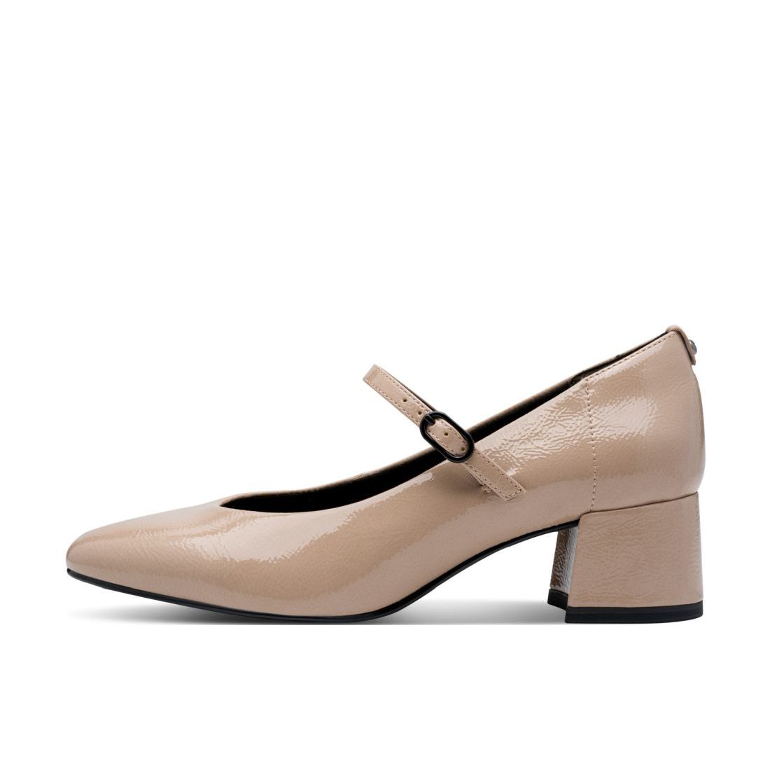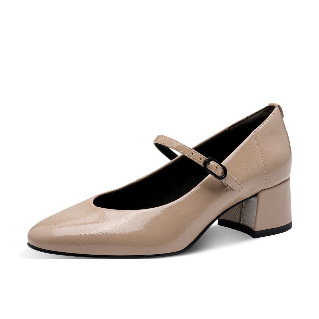 Detailní informace Elegantní dámské lodičky Tamaris, na stabilním širokém podpatku, jsou ideální volbou pro každodenní nošení do práce, ve volném čase i pro slavnostní příležitosti. Mají lesklý béžový svršek, úzký páseček přes nárt, stélku s paměťovou pěnou, podpatek s funkcí Antishock, který tlumí nárazy při došlapu a jemný protiskluzný vzorek na podešvi. Tyto boty si můžete vzít k sukni, šatům i ke kalhotám a vždy budete vypadat skvěle.