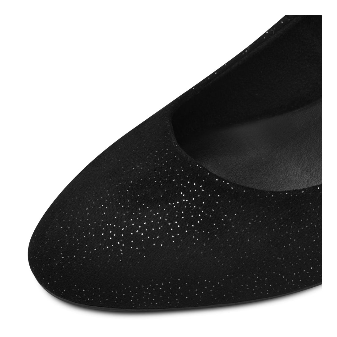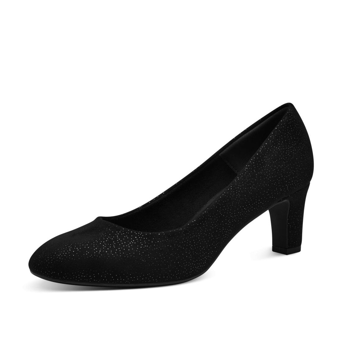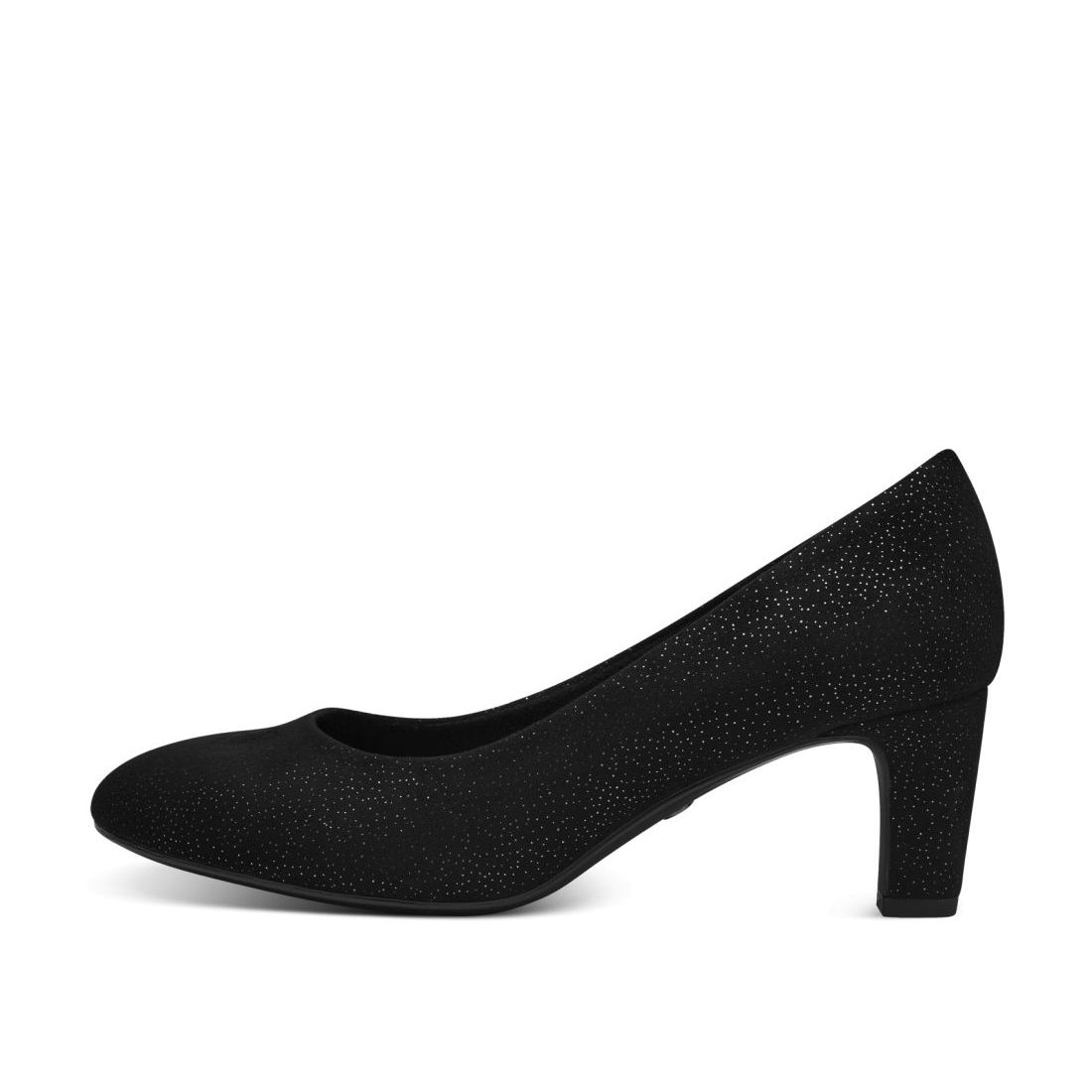 Detailní informace Chystáte se na slavnostní příležitost, tak to jsou skvělou volbou tyto třpytivé lodičky Tamaris, v černé barvě, které Vás zaujmou na první pohled. Mají jemnou špičku, stabilní podpatek pro jistý krok a měkkou stélku pro Vaše pohodlí po celý čas nošení. Ať už zvolíte šaty, sukni nebo kalhoty, tyto boty budou vždy třešničkou Vašeho outfitu.