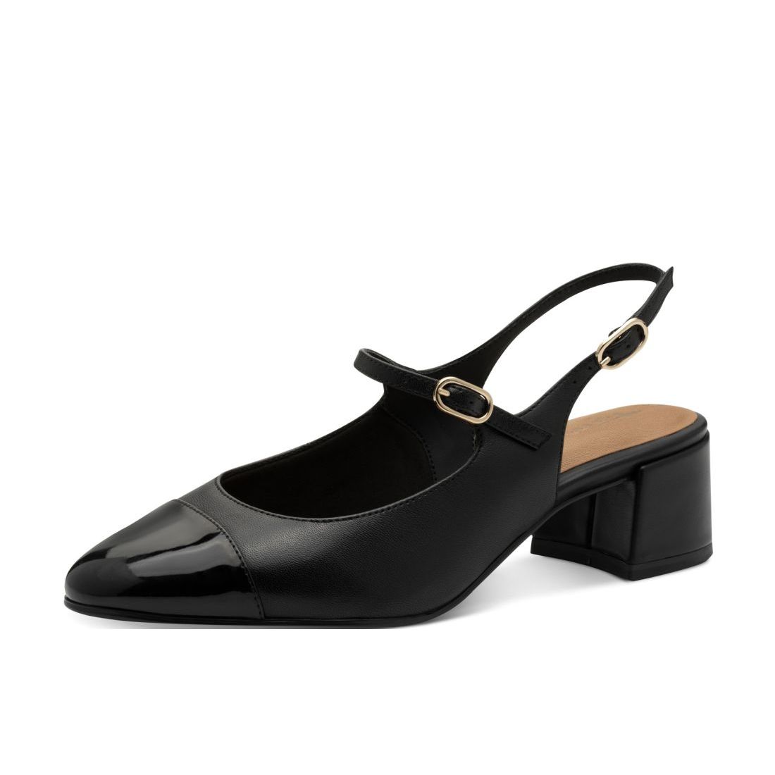 Detailní informace Elegantní dámské lodičky Tamaris, na stabilním širokém podpatku, jsou ideální volbou pro každodenní nošení do práce, ve volném čase i pro slavnostní příležitosti. Mají lesklou černou špičku, která v kombinaci s ostatním matným povrchem dodává lodičkám ten správný šmrnc. Pomocí dvou úzkých pásků si nastavíte správnou fixaci nohy. Pohodlnou chůzi Vám poskytne měkká Touch-it stélka z paměťové pěny a blokový podpatek, který je vybaven technologií AntiShock, který tlumí nárazy při došlapu a jemný protiskluzný vzorek na podešvi (AntiSlide). Tyto boty si můžete vzít k sukni, šatům i ke kalhotám a vždy budete vypadat skvěle.