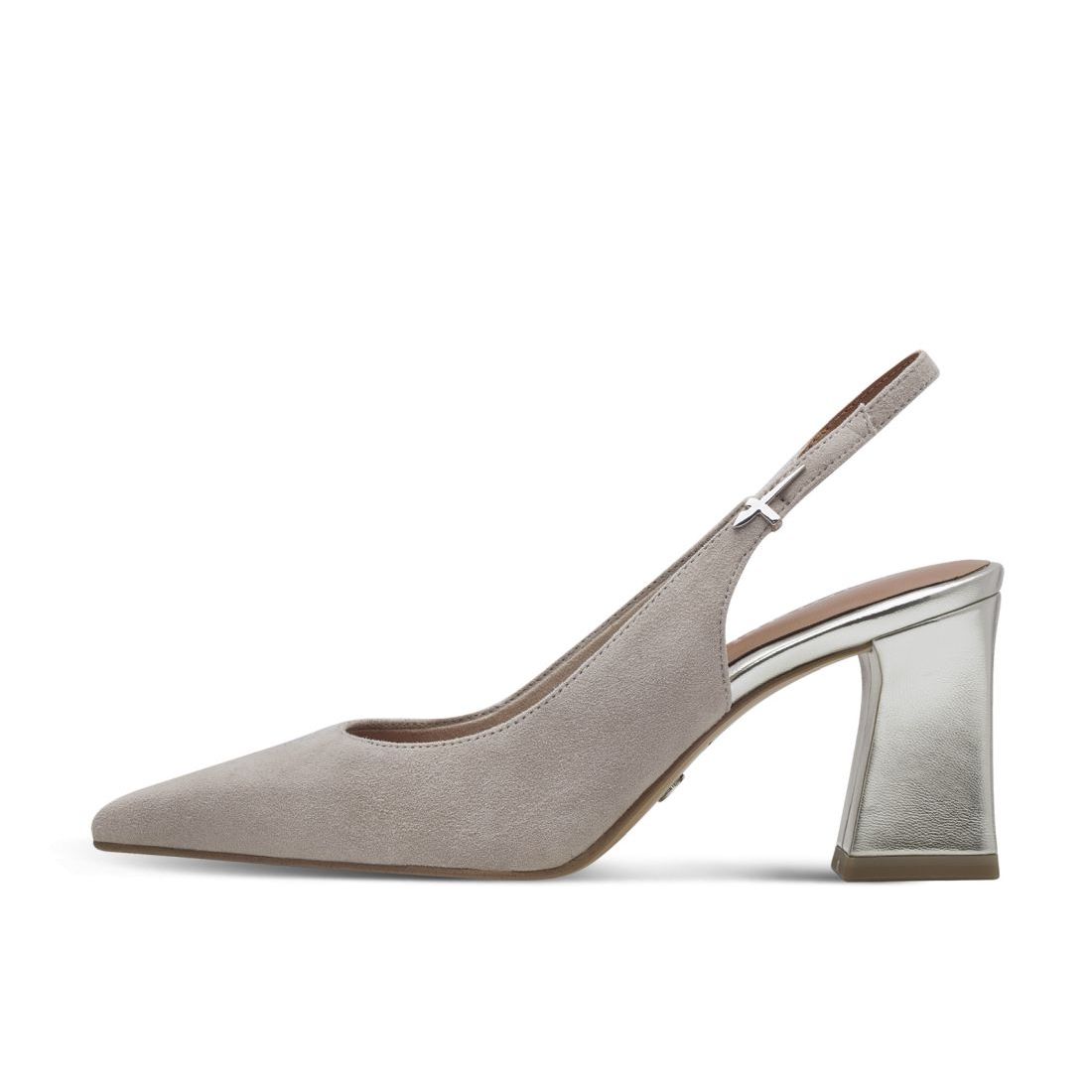 Detailní informace Úžasné dámské lodičky Tamaris, které zaujmou na první pohled. Svrchní materiál je z broušené kůže, která má jemnou strukturu. Lodičky mají uzší špičku, která dodává obuvi tu správnou eleganci. Díky nastavitelnému pásku si přizpůsobíte obuv svým potřebám. Na boku je krásné, ozdobné logo zn. Tamaris. Lesklý podpatek je dokonalým kontrastním prvkem k šedému svrchnímu materiálu. Navíc je opatřen technologií AntiShock a AntiSlide. Pokud hledáte elegantní obuv, tak s těmito lodičkami ve společnosti vždy zazáříte.