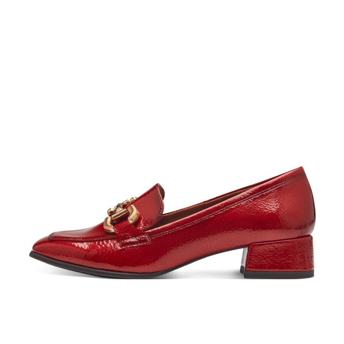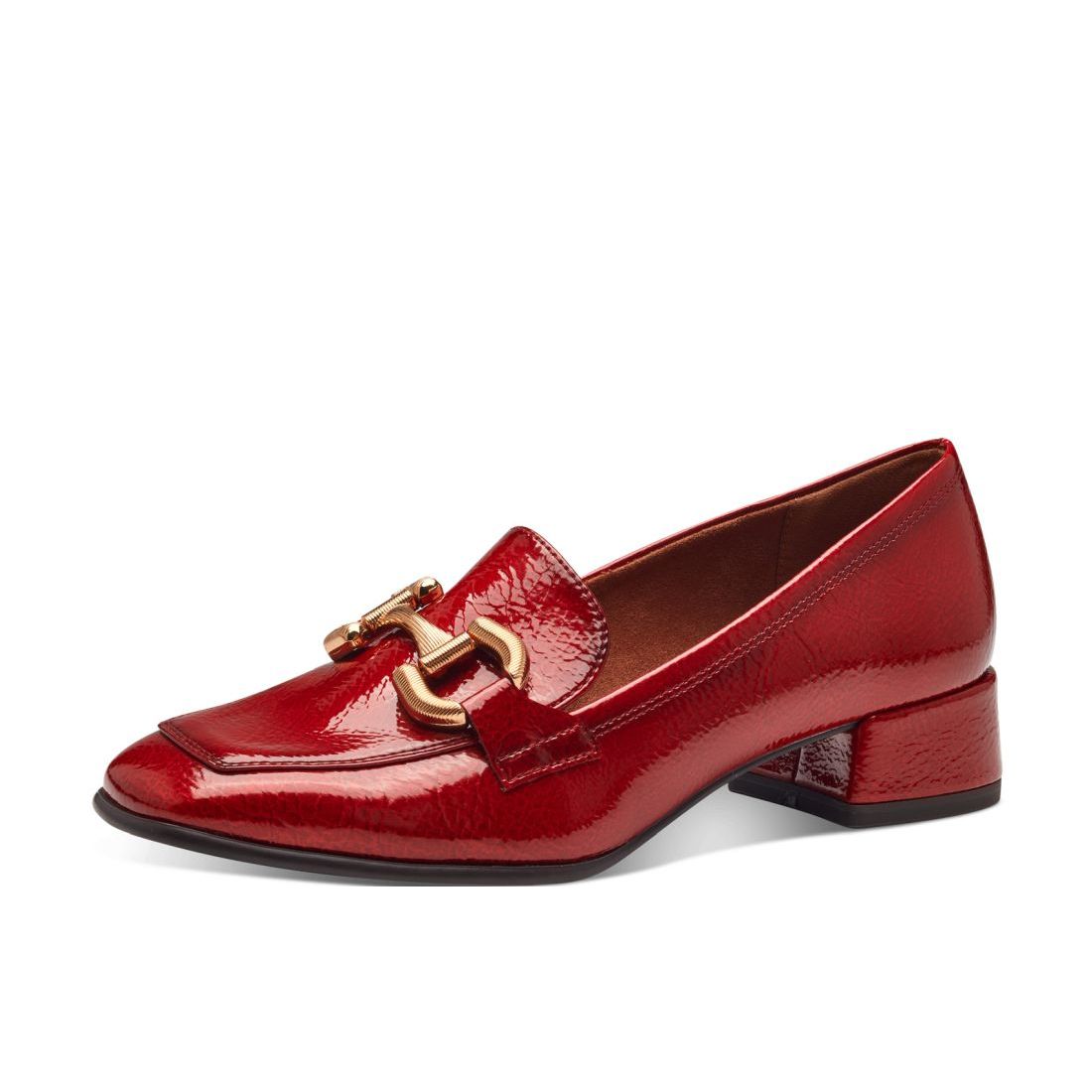 Elegance na každém kroku, to jsou tyto dámské mokasíny značky Tamaris v červené barvě. Nejen, že budete vypadat neodolatelně, ale také se budete cítit celý den pohodlně. Tato obuv je vybavena Technologií AntiShokk, která tlumí nárazy a tím chrání Vaši páteř. Oceníte koženou stélku Touch-It, která se přizpůsobí tvaru Vašeho chodidla. Díky technologii AntiSlide - zajišťuje skvělou přilnavost podpatku k povrchu, se i na vysokých podpatcích budete cítit pohodlně. Využijete jak do práce, tak ke slavnostní příležitosti.