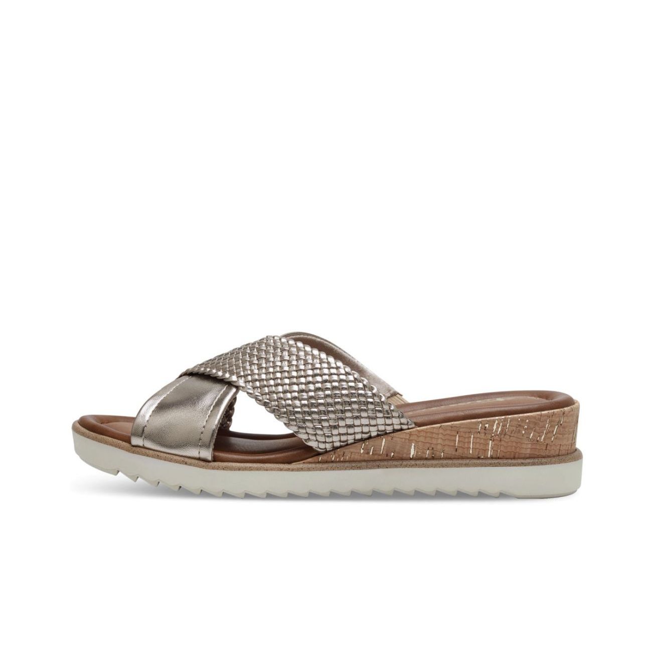 Nabízíme Vám moderní nazouváky od značky Tamaris, které zaujmou na první pohled svým zpracováním. Překřížené pásky na nártu jsou velmi praktické a pohodlné. Celkový design dotváří vroubkovaná podešev a boční lem v imitaci korku. Pohodlí při každém kroku Vám zajistí měkká, paměťová Touch-it stélka. Technologie: Touch-it - měkká stélka, která se dokonale přizpůsobí tvaru nohy, a díky tomu při nošení zajišťuje optimální pohodlí.