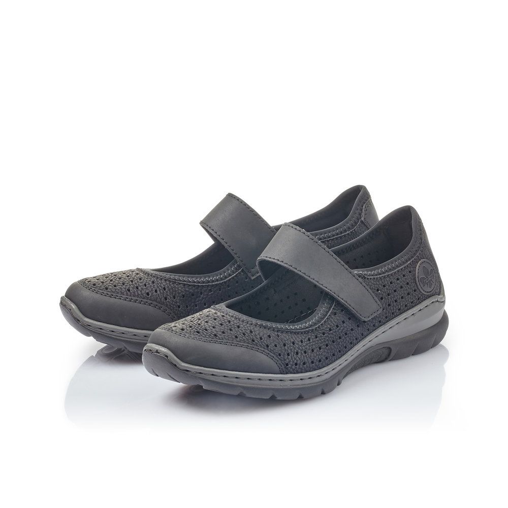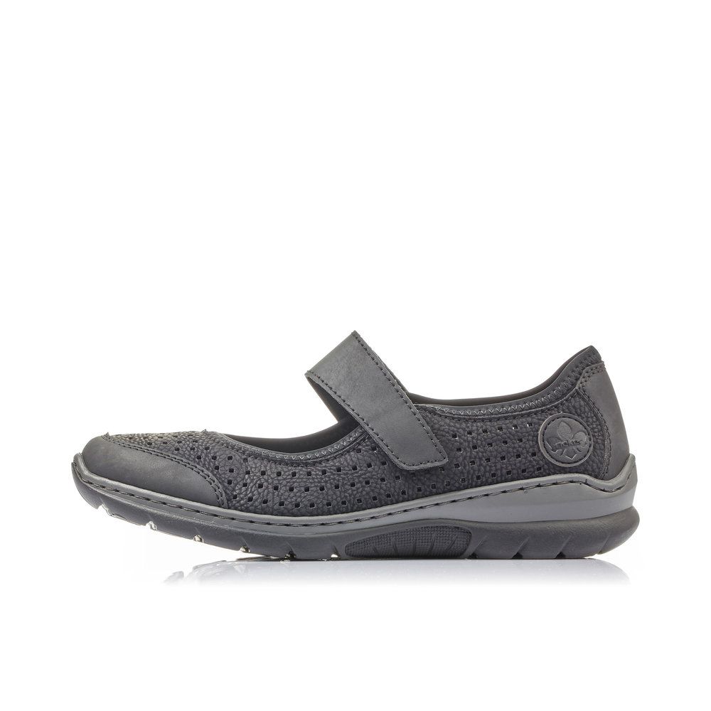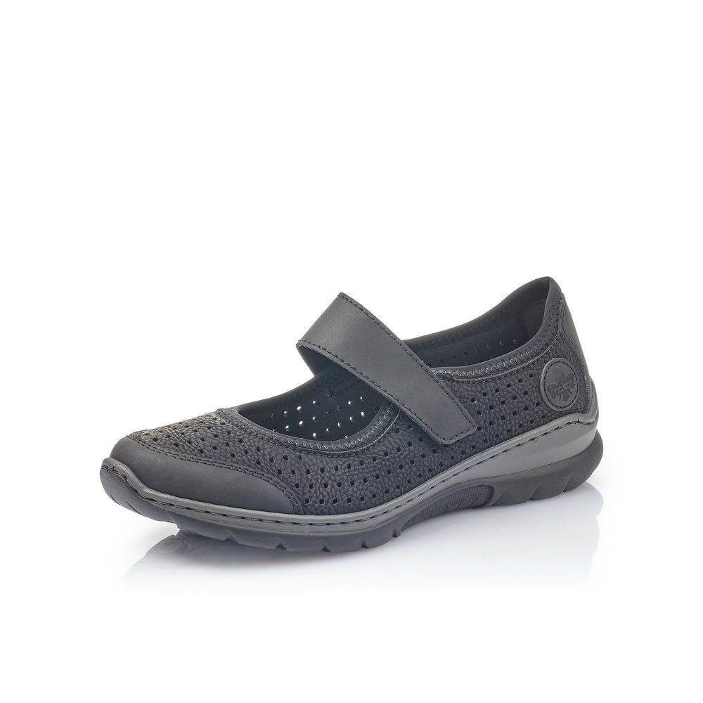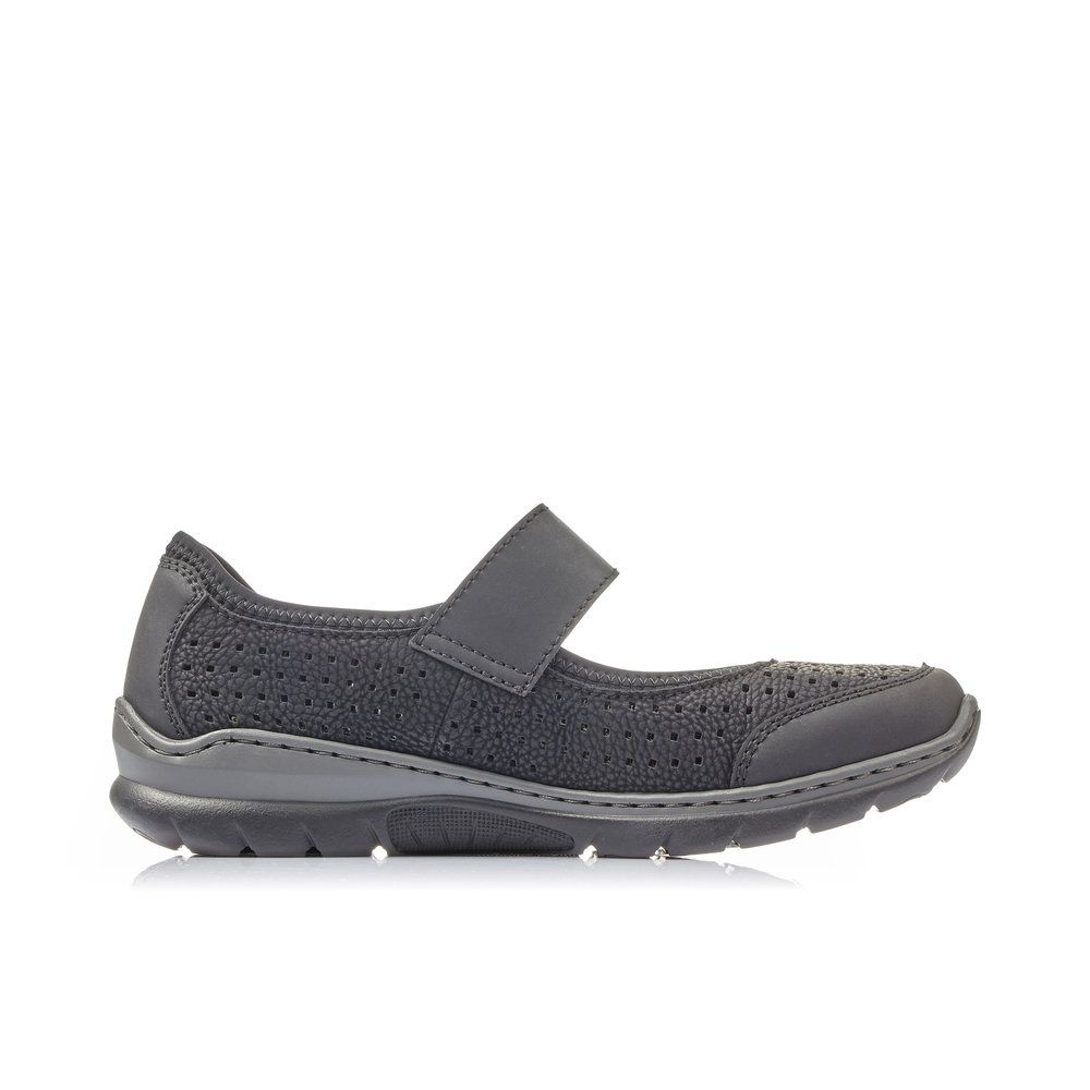 Velmi pohodlné dámské polobotky od značky Rieker v černé barvě. Obuv má perforovaný svršek, díky čemuž je zajištěno dobré odvětrávání a pásek přes nárt, který Vám zajistí dobrou fixaci nohy. Uvnitř najdete měkkou vyjímatelnou stélku z paměťové pěny označenou jako MemoSoft, která změkčuje došlap a zároveň se maximálně přizpůsobuje tvaru Vaší nohy. Díky tomu, že je vyjímatelná ji můžete kdykoliv dle potřeby vyjmout a omýt či vysušit nebo vyměnit například za ortopedickou. Pohodlí Vám zajistí flexibilní podešev se systémem Antistress, která perfektně tlumí při došlapu nárazy a otřesy, čímž šetří tlak na Vaše nohy a páteř. Technologie: Antistress - podešev je díky této technologii lehká, flexibilní, absorbuje nárazy při došlapu a snadno se přizpůsobí každé noze. Vyjímatelná stélka Stélka MemoSoft - stélka z paměťové pěny, která změkčuje došlap a zároveň se maximálně přizpůsobuje tvaru Vaší nohy.