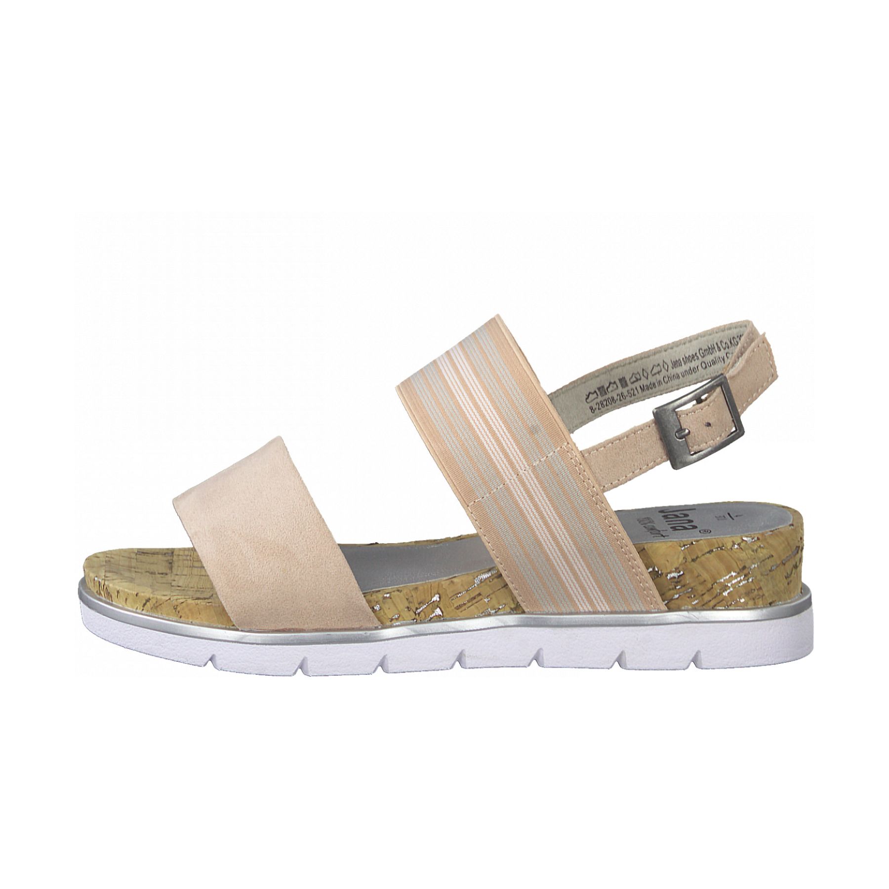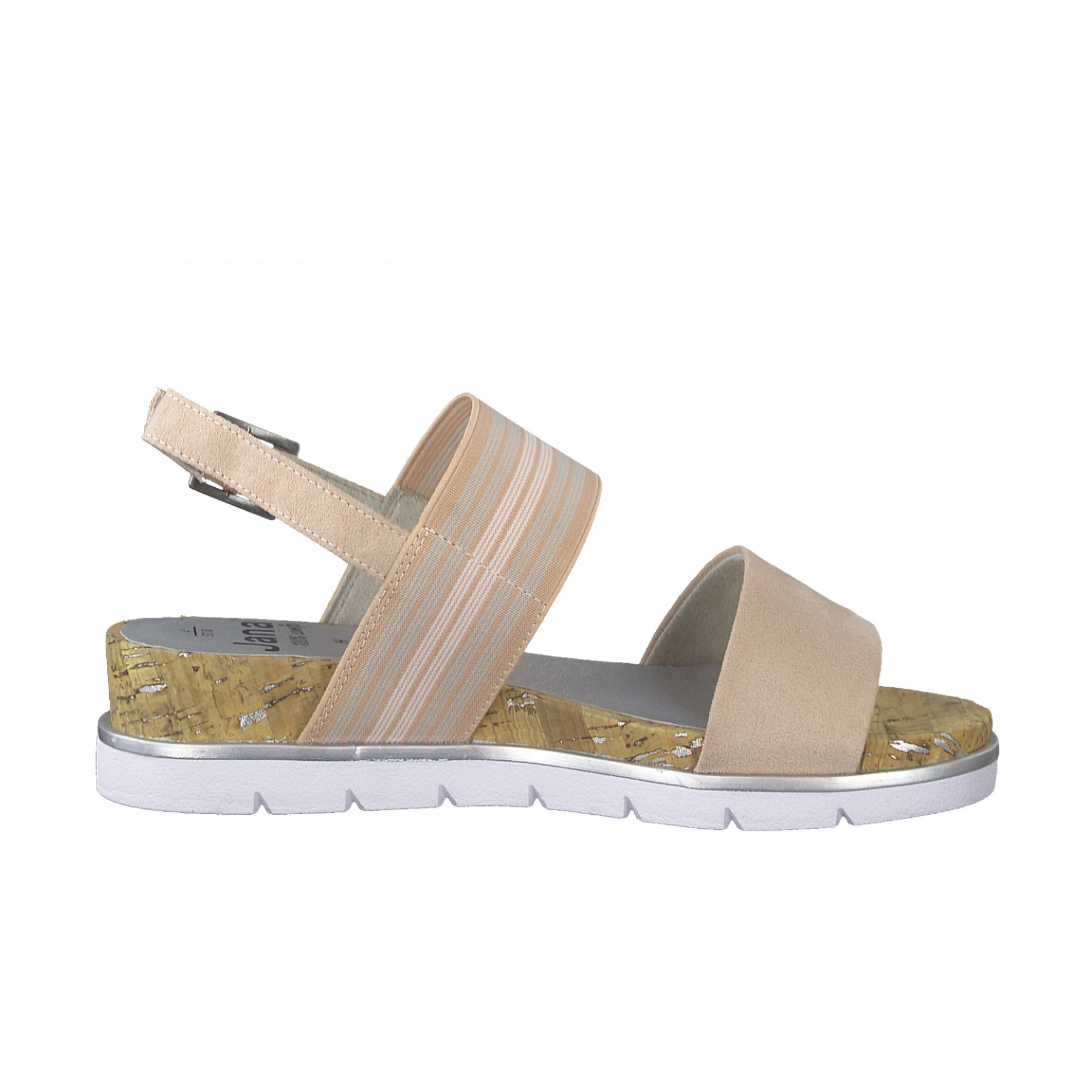 Detailní informace Moderní dámské sandály Jana, které si rychle zamilujete. Svršek je vyrobený z kvalitního textilního materiálu. Obuv má dva široké pásky a jeden tenčí kolem paty, který má kovovou sponu a délkově nastavitelný pásek. Můžete si tak boty přizpůsobit svým chodidlům přesně podle svých představ. Pásek přes nárt je z pružného materiálu, který se dokonale přizpůsobít tvaru Vaší nohy. Pohodlná stélka v kombinaci s podešví SoftFlex Vám zajistí pohodlí v této obuvi po celý den.