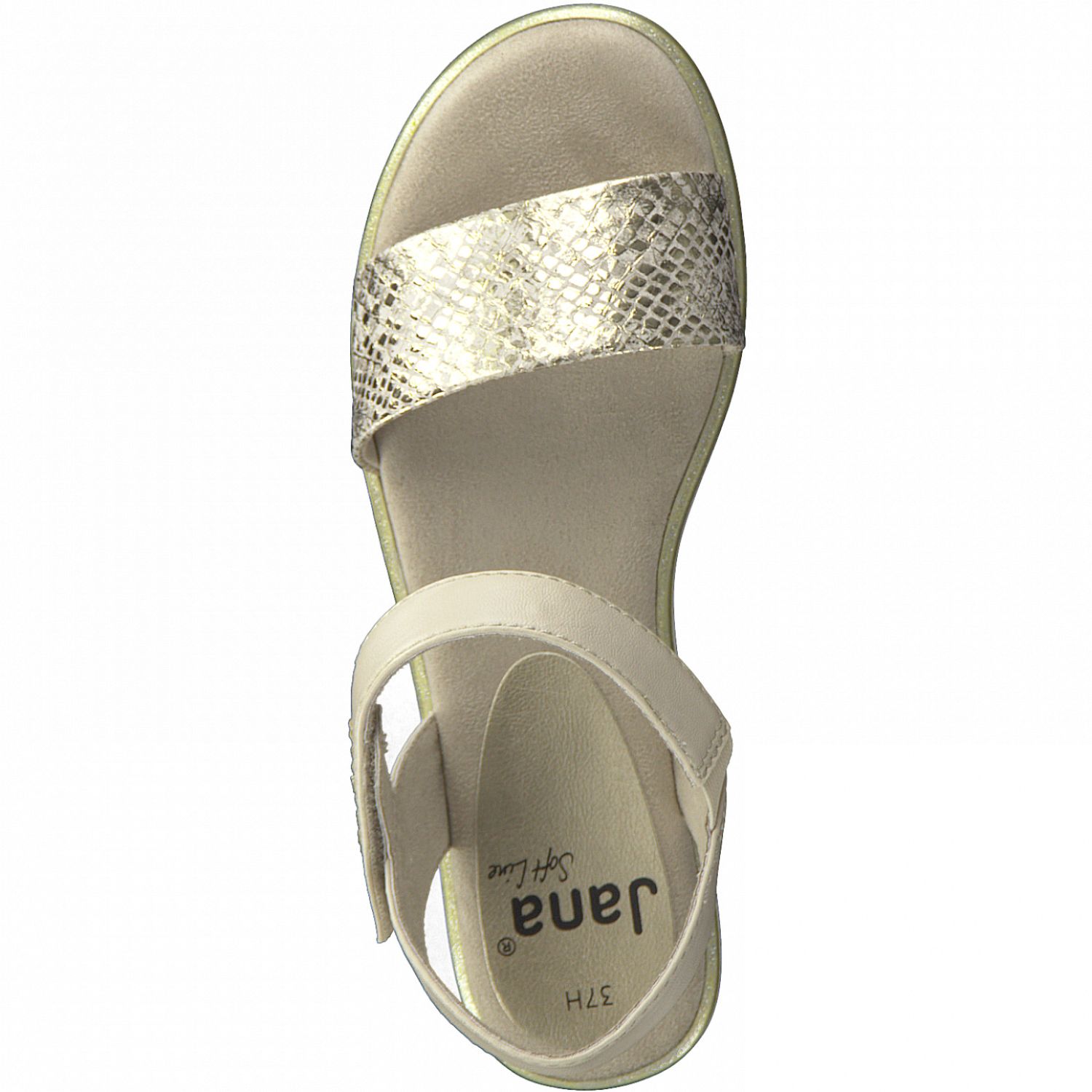 Detailní informace Tyto dámské letní sandálky ve zlato/béžové barvě od značky Jana, z kolekce Soft Line, musíte mít i Vy ve svém botníku. Pohodlí Vám zaručí příjemně měkká stélka a zajímavá mírně vyvýšená podešev. U horního pásku přes nárt je z vnitřní strany všitá pružinka, která se dokonale přizpůsobí šíři Vaší nohy. Navíc je možnost si horní pásek utáhnout dle potřeby díky zapínání na suchý zip. Všité pružinky z vnitřní strany u horního a prostředního pásku Vám usnadní obouvání. Obuv je vyrobena z kvalitního syntetického materiálu, podšívka je z textilního materiálu.