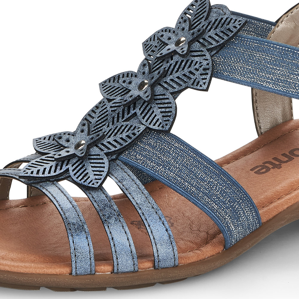 Detailní informace Nabízíme Vám nádherné dámské sandály Remonte v modré barvě s originálním květinovým vzorem. Tento model je "vyladěný" do detailu. Díky pružným páskům se Vám budou boty snadno obouvat a dokonale se přizpůsobí tvaru Vašich nohou. Pohodlí po celý den Vám zajistí měkká kožená stélka, společně s kvalitní podešví.