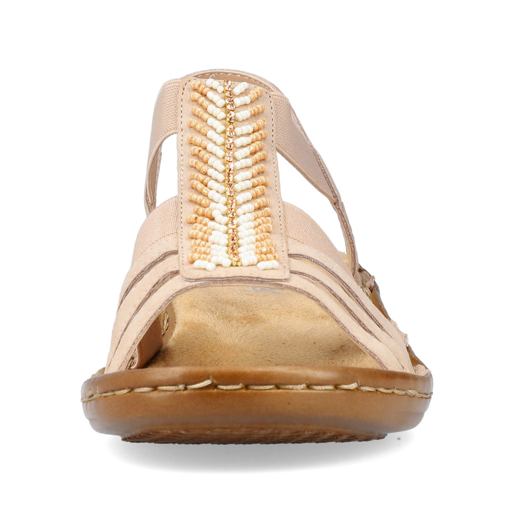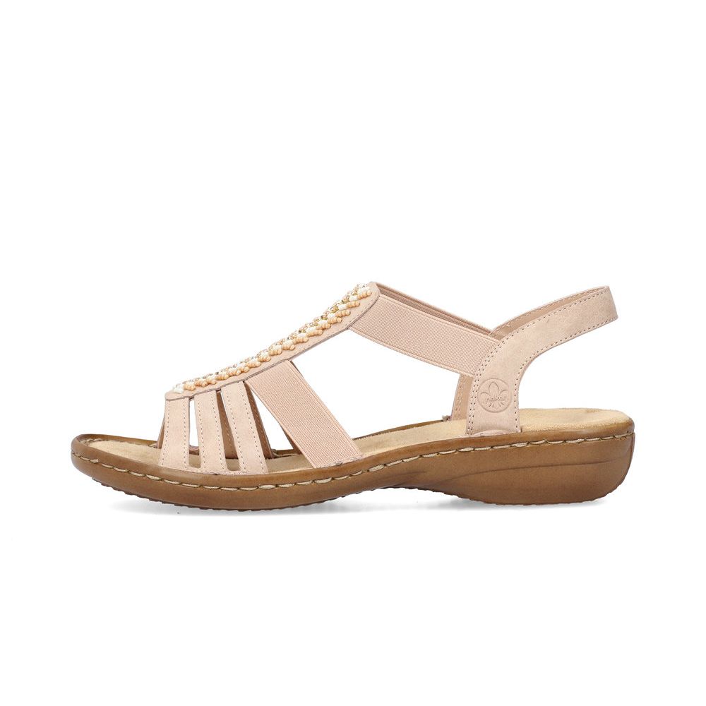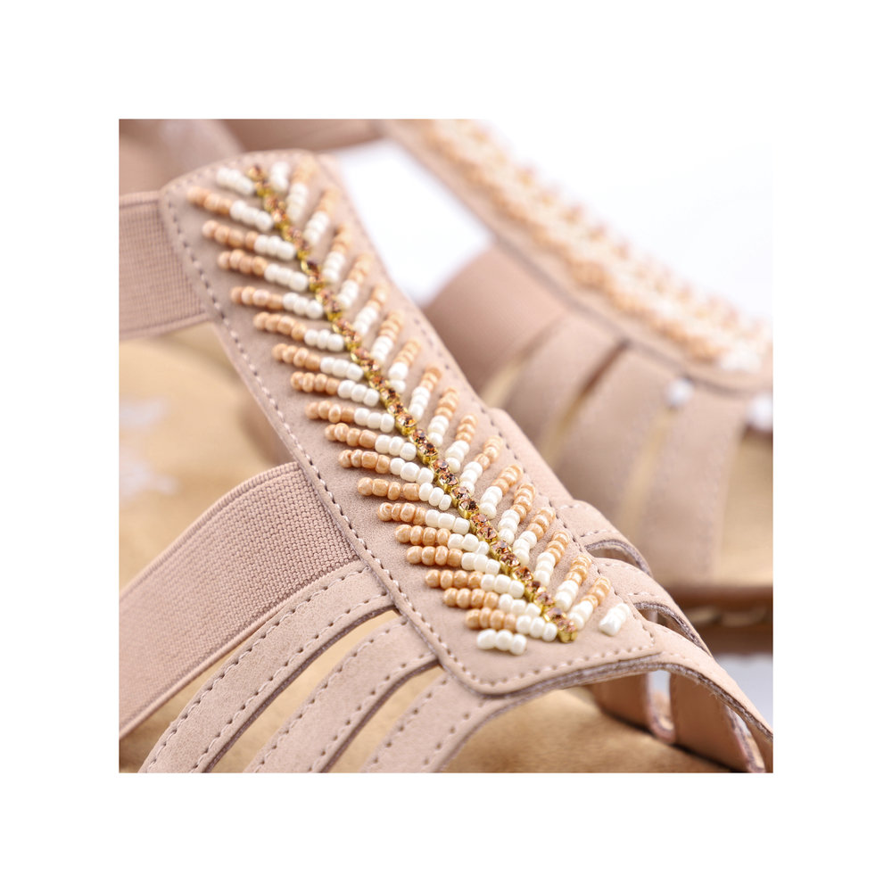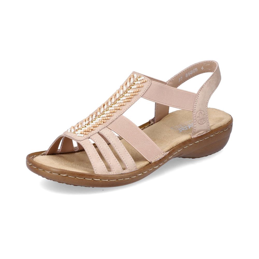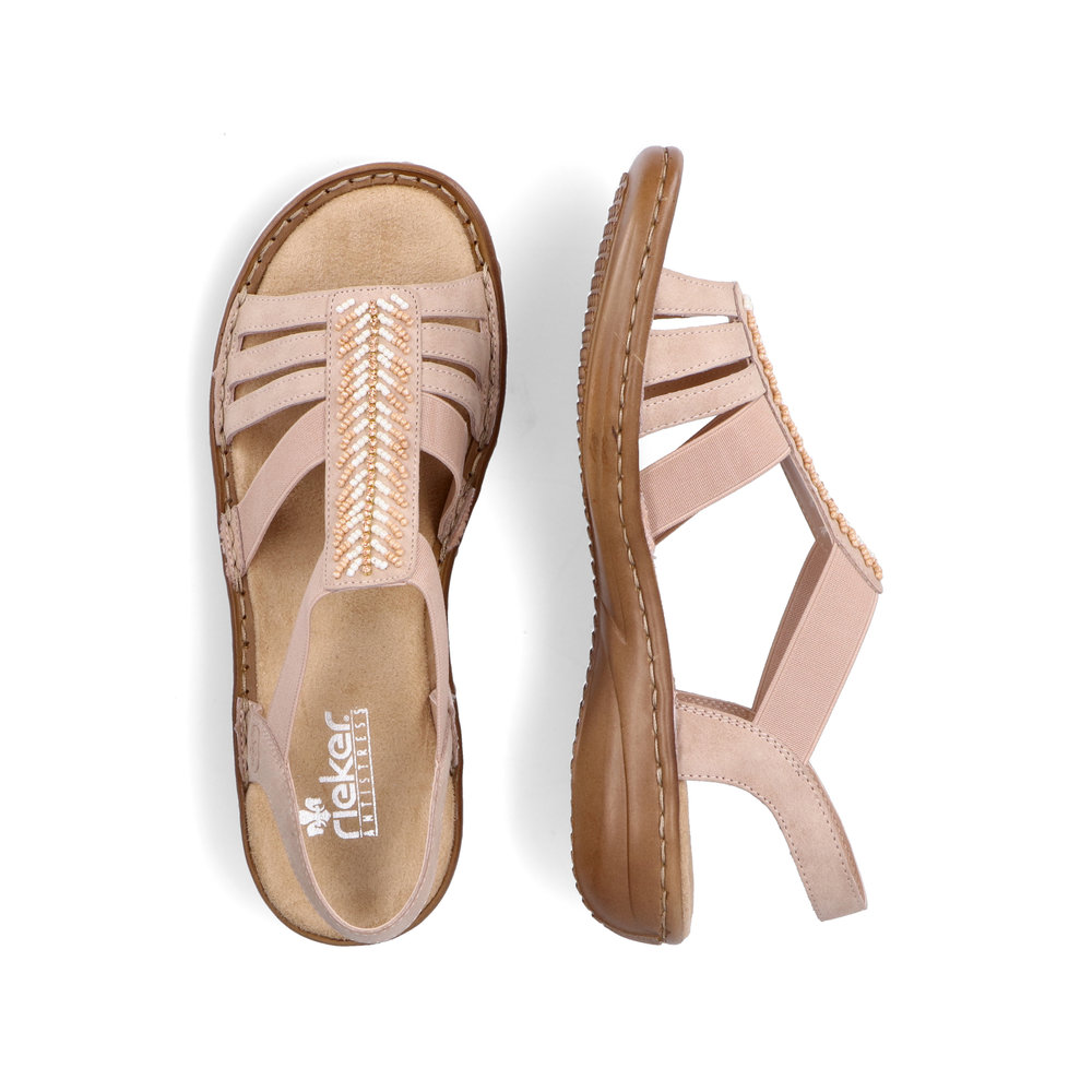 Letní dámské sandály Rieker v jemné růžové barvě. Na první pohled upoutá dekorace z korálků, která se perfektě hodí pro letní outfit. Pomocí dvou pružných pásků si obuv snadno obujete a přizpůsobíte svým nohám. Pohodlná měkká stélka Vám zpříjemní každý Váš došlap. Flexibilní podešev tlumí nárazy a tím chrání Vaši páteř. Lehce je sladíte k riflím, šatům nebo látkovým kalhotám. Technologie: Antistress - podešev je díky této technologii lehká, flexibilní, absorbuje nárazy při došlapu a snadno se přizpůsobí každé noze.