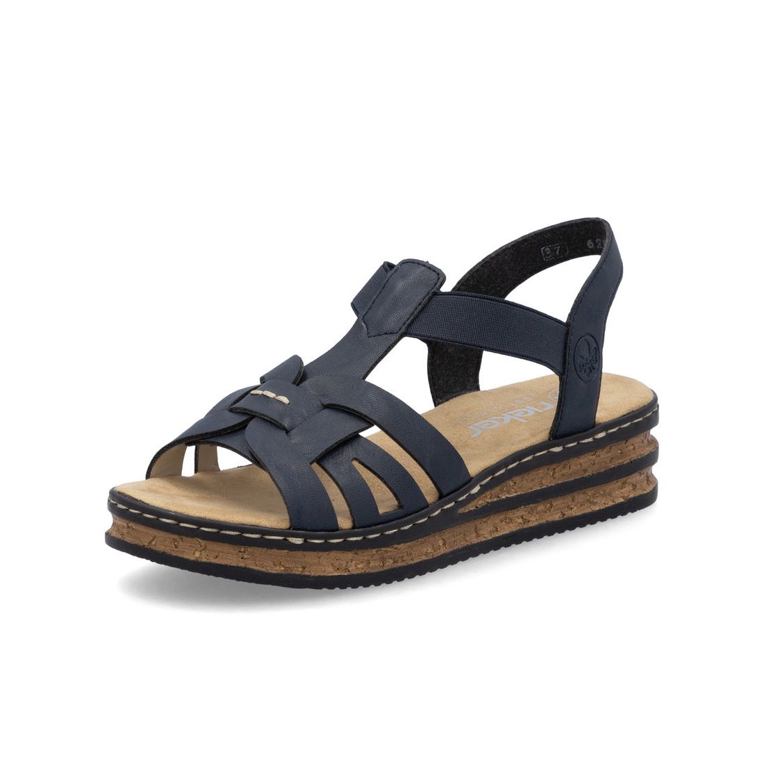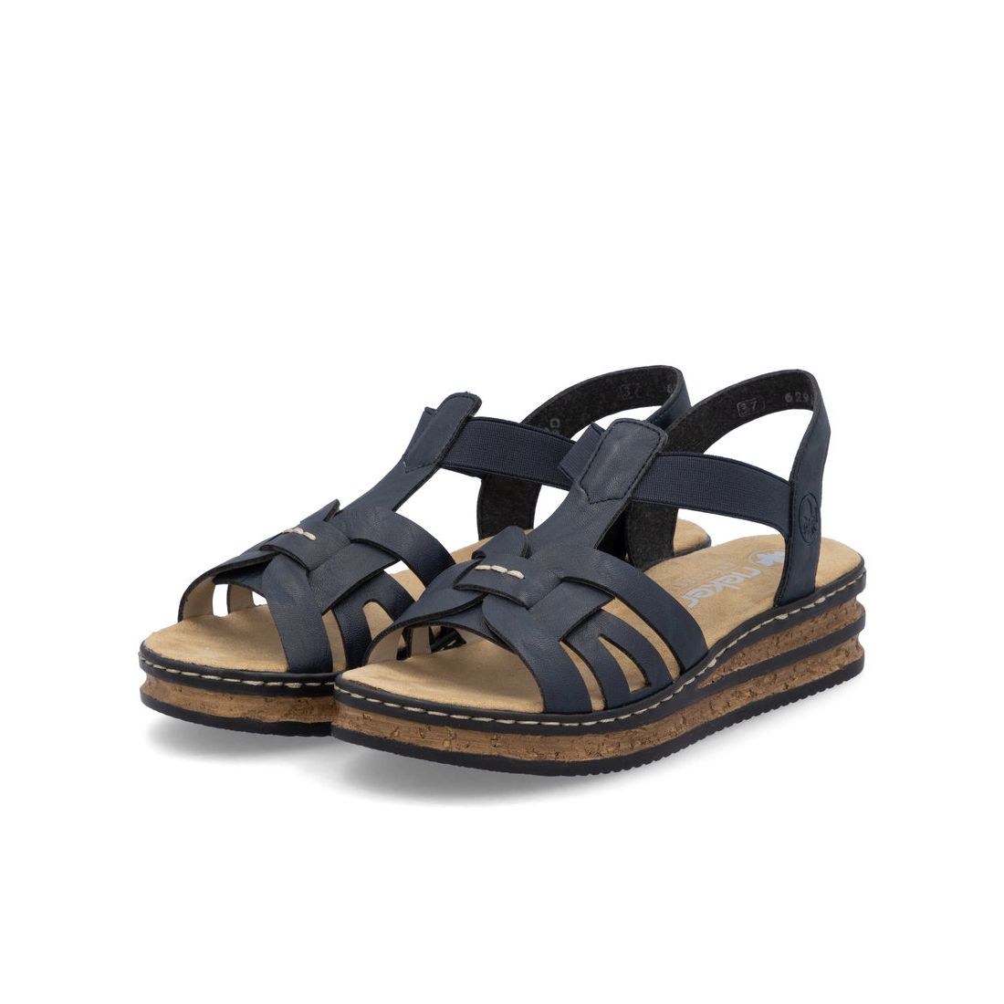 Tyto dámské letní sandály Rieker v modré barvě, budou skvěle vypadat na opálené kůži. Jejich zajímavě propletené pásky, na pření části boty, dolaďuje světlé prošití, které je i na podešvi. Díky dvěma pružným páskům si snadno obuv obujete a bude Vám pěkně držet na noze. Podešev z imitace korku s tmavými proužky podtrhne celkový vzhled obuvi. Měkká příjemná stélka spolu s flexibilní podešví, která tlumí nárazy, Vám zaručí pohodlí na každém kroku. Technologie: Antistress - podešev je díky této technologii lehká, flexibilní, absorbuje nárazy při došlapu a snadno se přizpůsobí každé noze.