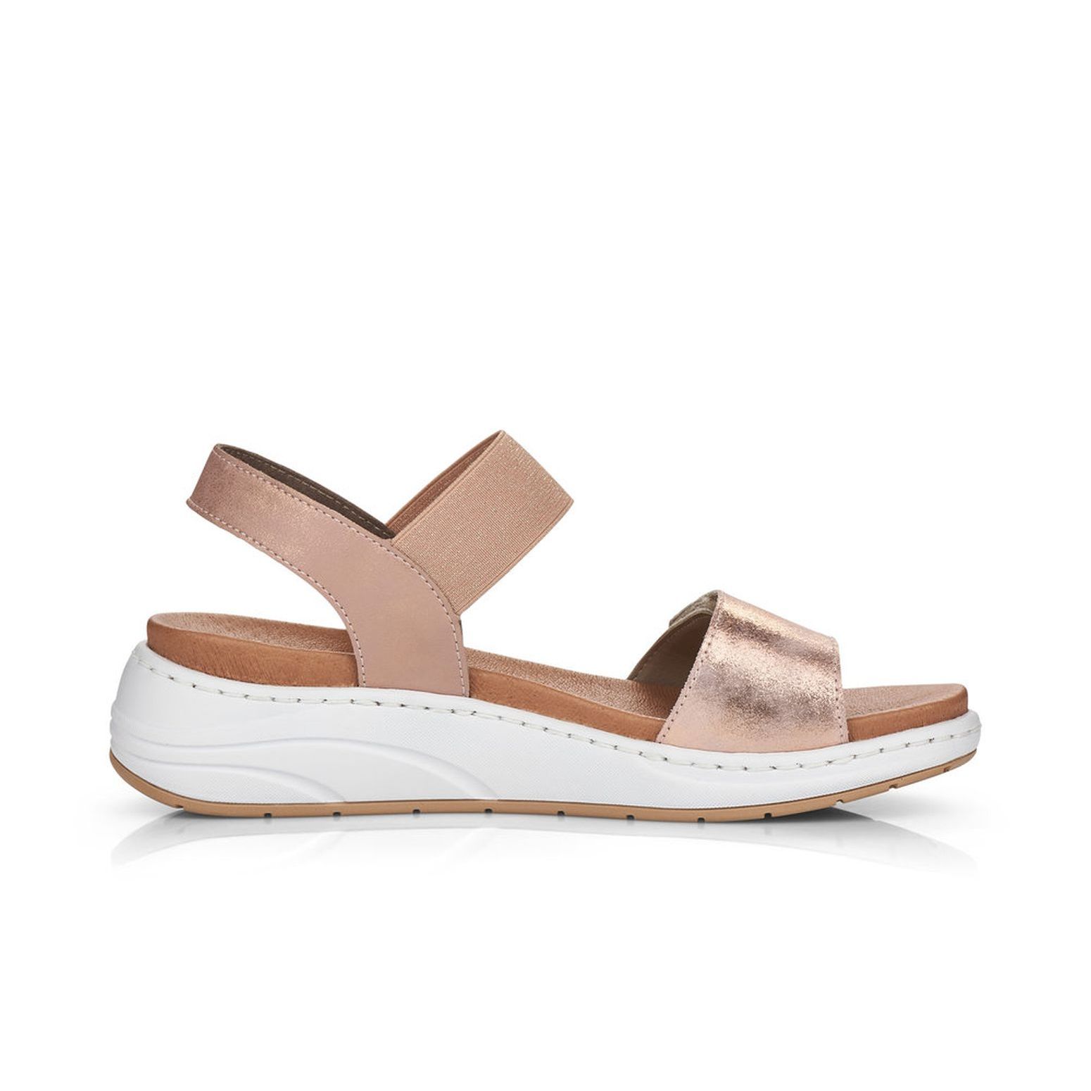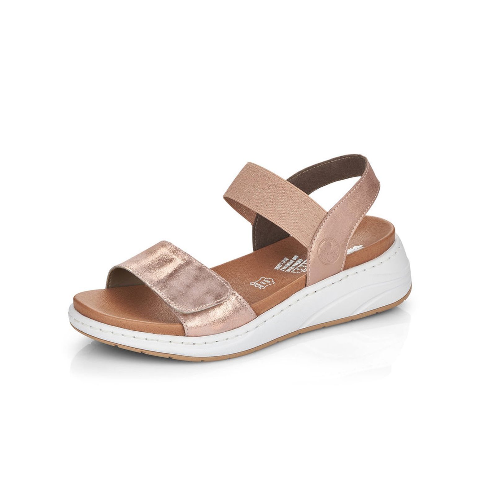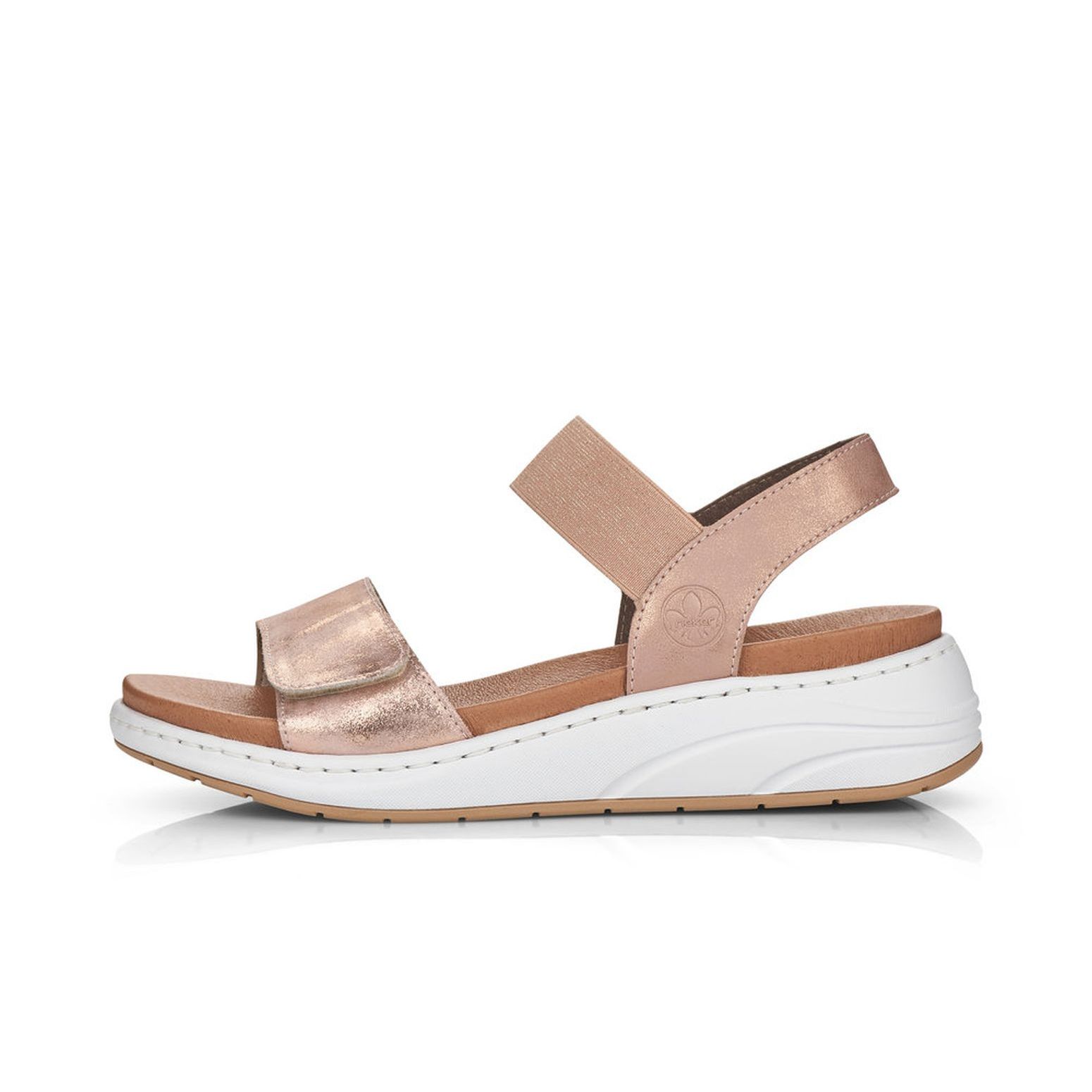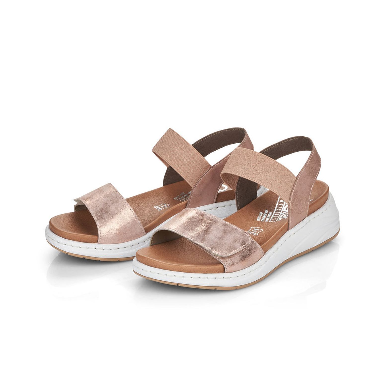 Tyto dámské sandály Rieker v růžové barvě si rychle oblíbíte. Snadno si je obujete díky pružnému pásku a pomocí suchého zipu na předním pásku, si obuv přizpůsobíte svým potřebám. Jemně lesklý materiál, spolu s bílým rámečkem, dělají tyto boty neodolatelné a lehce je sladíte s jakýmkoliv outfitem. Krásné budou, jak k šatům, riflím, tak i k legínám. Tento model nabízíme na našem e-shopu v další barevné kombinaci (platí do vyprodání zásob). Technologie: Antistress - podešev je díky této technologii lehká, flexibilní, absorbuje nárazy při došlapu a snadno se přizpůsobí každé noze. Stélka z paměťové pěny.