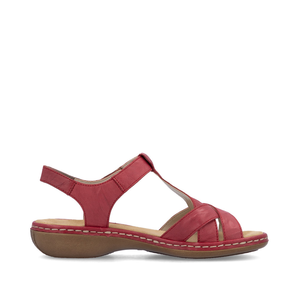Detailní informace Tyto dámské sandály značky Rieker v červené barvě jsou ideální volbou pro teplé letní dny. Jednoduchý a čistý styl v podobě překřížených pásků z přírodní kůže nikdy nevyjde z módy. Horní pásek má ozdobné prošívání ve tvaru X a zapínání na suchý zip, což zajišťuje, že se Vám bude obuv lépe nazouvat a hlavně si ji nastavíte přesně podle Vašich představ. Unikátní technologie Antistress ve spojení s pohodlnou měkkou stélkou Vám zajistí, že v botách budete moct být klidně celý den a Vaše nohy to ani nepoznají.