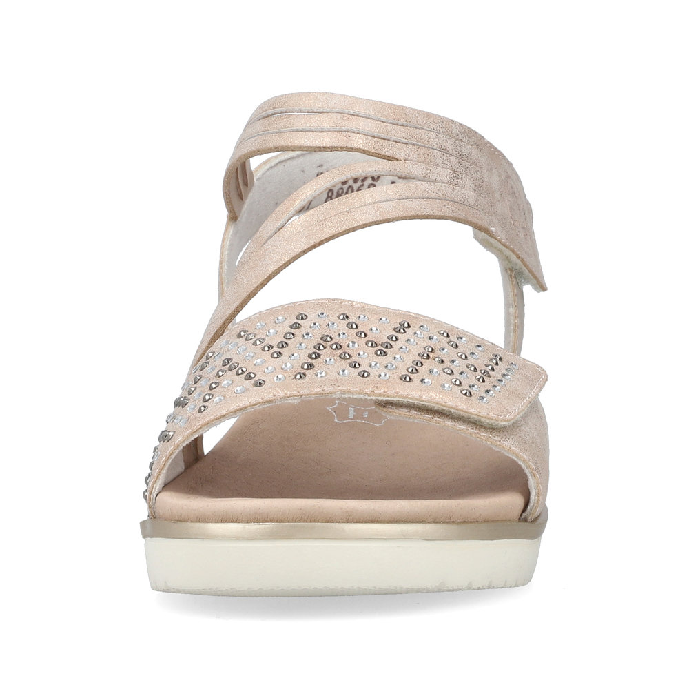 Detailní informace Dámské letní sandály Rieker, v jemně růžové barvě, doladí Váš celkový outfit do práce nebo ve volném čase. Tyto boty mají široký pásek na suchý zip ozdobeny kamínky. Snadné obouvání Vám dopřeje pásek na suchý zip. Pohodlná měkká stélka a flexibilní podešev Vám zpříjemní každý krok.