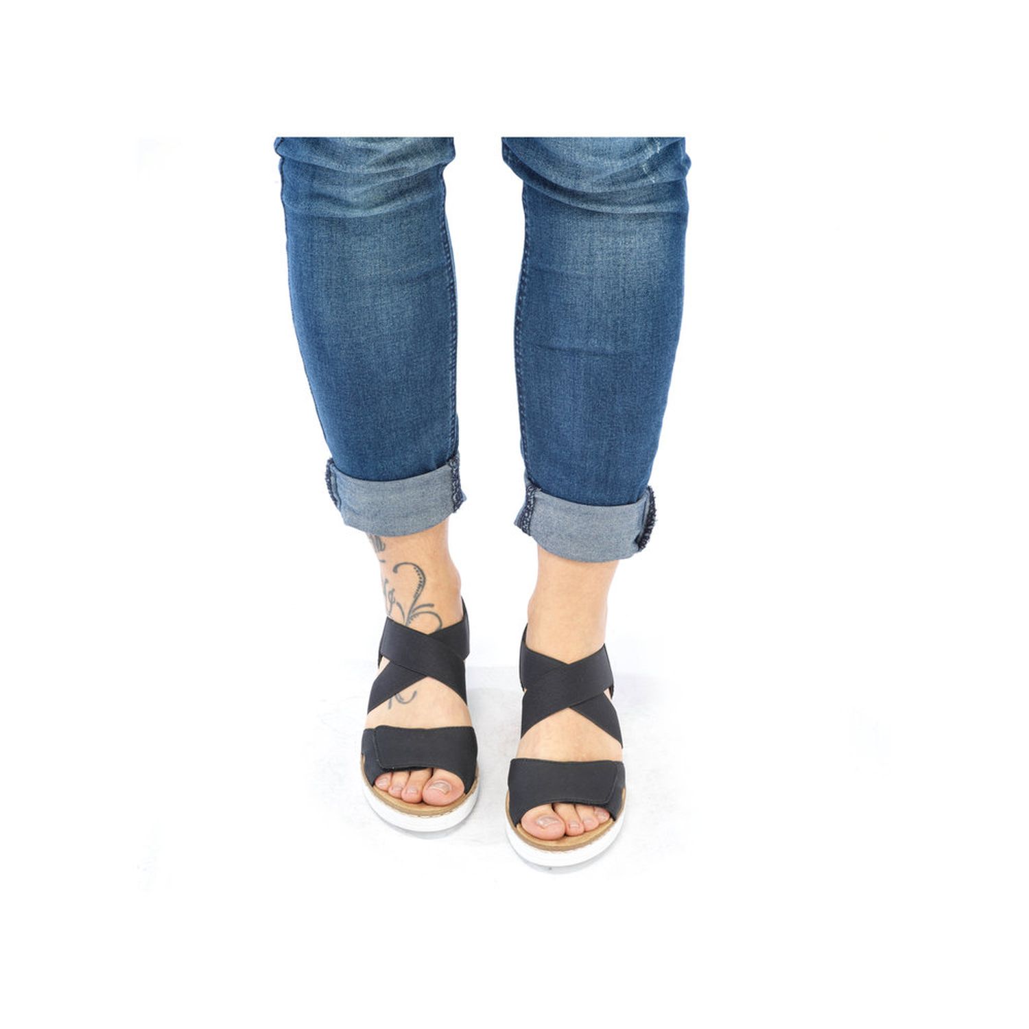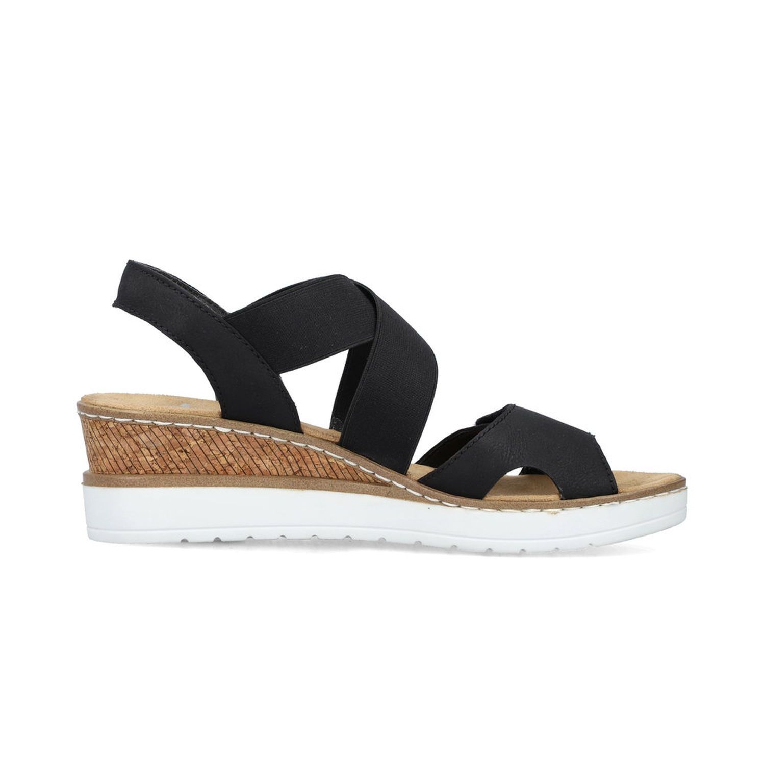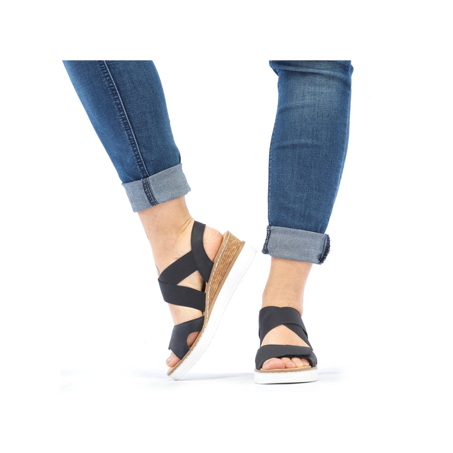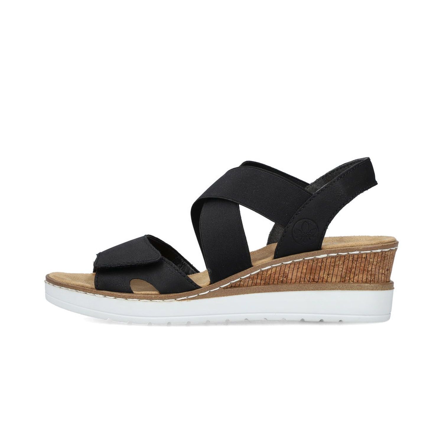 Tyto dámské letní sandálky Rieker jsou velmi povedený model. Svou barevnou a materiálovou kombinací působí sportovně elegantně. Unosíte je tedy k jakémukoliv outfitu. Díky suchému zipu a pružným gumičkám si obuv snadno obujete a přizpůsobíte svým nohám. Zajímavě řešený klínek podtrhne celkový vzhled obuvi. Tyto boty si můžete vzít jak do práce, tak na procházky městem. Technologie: Antistress - podešev je díky této technologii lehká, flexibilní, absorbuje nárazy při došlapu a snadno se přizpůsobí každé noze.