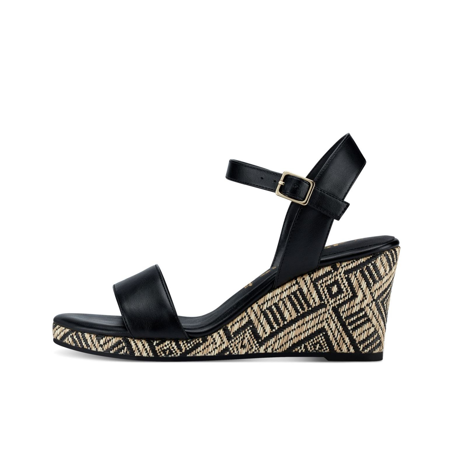 Detailní informace Krásné letní sandálky Tamaris se vzorovaným klínkem, to je to pravé pro letní dny. Tyto elegantní letní sandálky Tamaris splní Vaše očekávání. Mají jemný širší pásek přes nárt a další pásky s přeskou kolem nohy. Oceníte pohodlí díky stélce z paměťové pěny. Obuv na klínku je velice oblíbená a pohodlná. Tyto boty budou skvěle vypadat k jednobarevným letním šatům, sukni i kalhotám.
