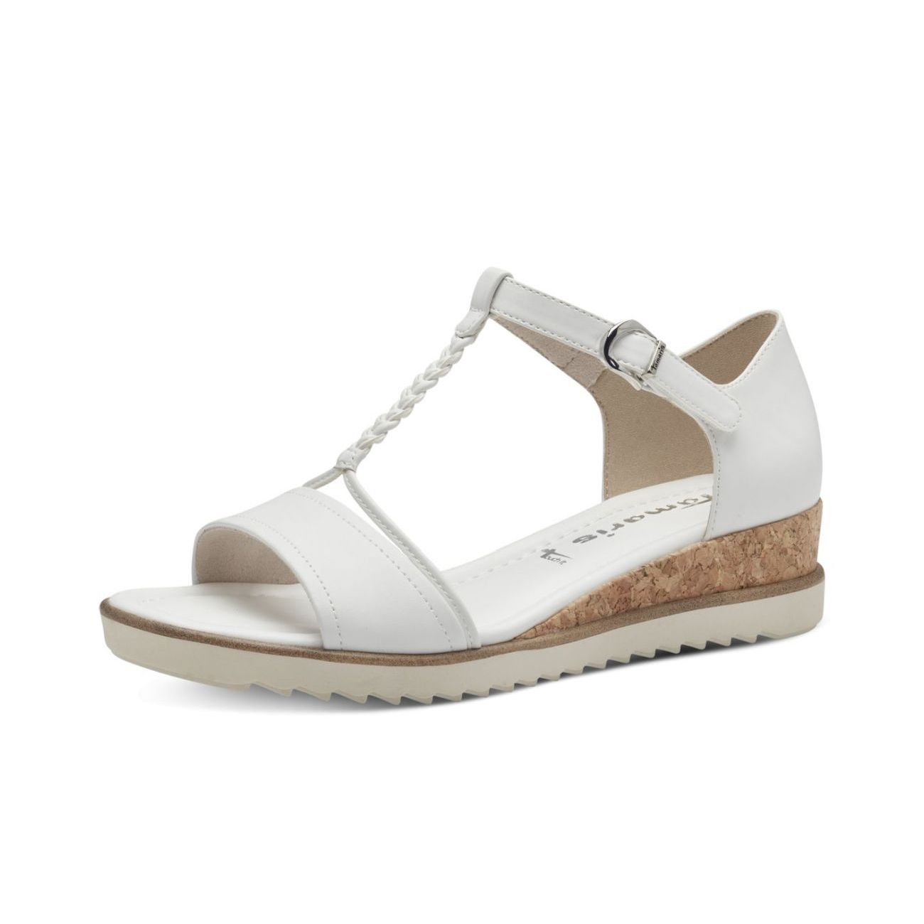 Tyto letní sandály Tamaris, v bílé barvě, na pohodlném klínku se Vám budou hodit k jakémukoliv oblečení do práce, či ve volném čase. Skvěle vypadá propojení pásku přes nárt s páskem kolem kotníku. Díky pásku kolem kotníku si obuv přizpůsobíte svým potřebám. Pohodlná měkká, Touch-it stélka zajistí Vašim chodidlům maximální komfort. Tyto sandály jsou skvělou volbou. Technologie: Touch-it - měkká stélka, která se dokonale přizpůsobí tvaru nohy, a díky tomu při nošení zajišťuje optimální pohodlí.