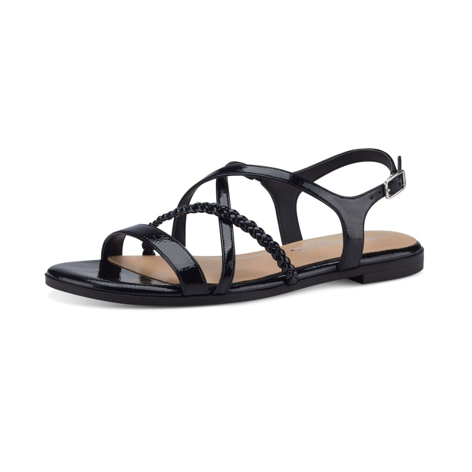 Detailní informace Elegantní dámské letní sandále Tamaris v černém lesku doladí celkový outfit k dokonalosti. Jemné pásky v lesku jsou doladěny nízkou pohodlnou podešví. Díky přesce si obuv přizpůsobíte svým nohám. Jednoduchý styl se hodí vždy, a tak si můžete vzít své oblíbené oblečení a zazářit v práci nebo na procházce městem.