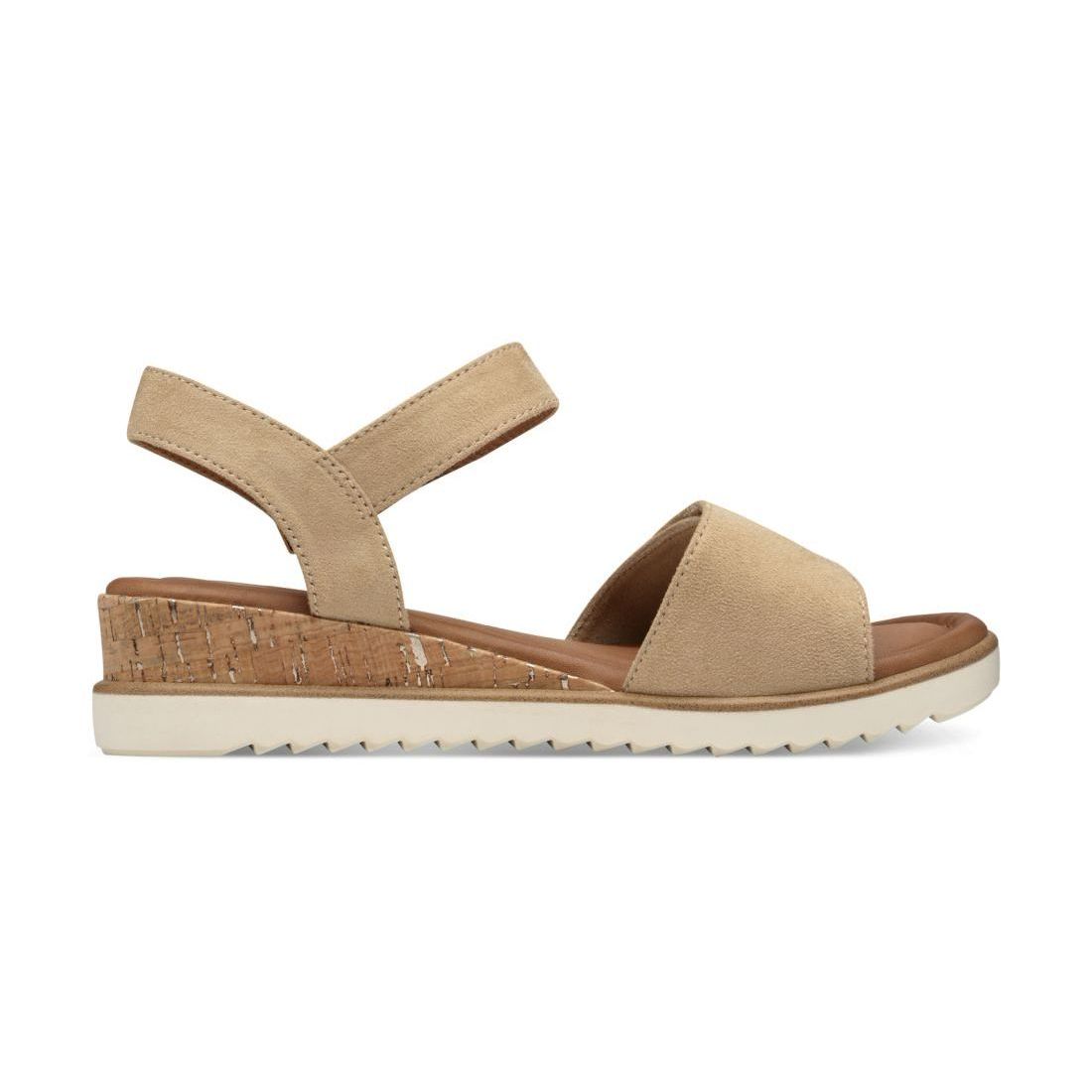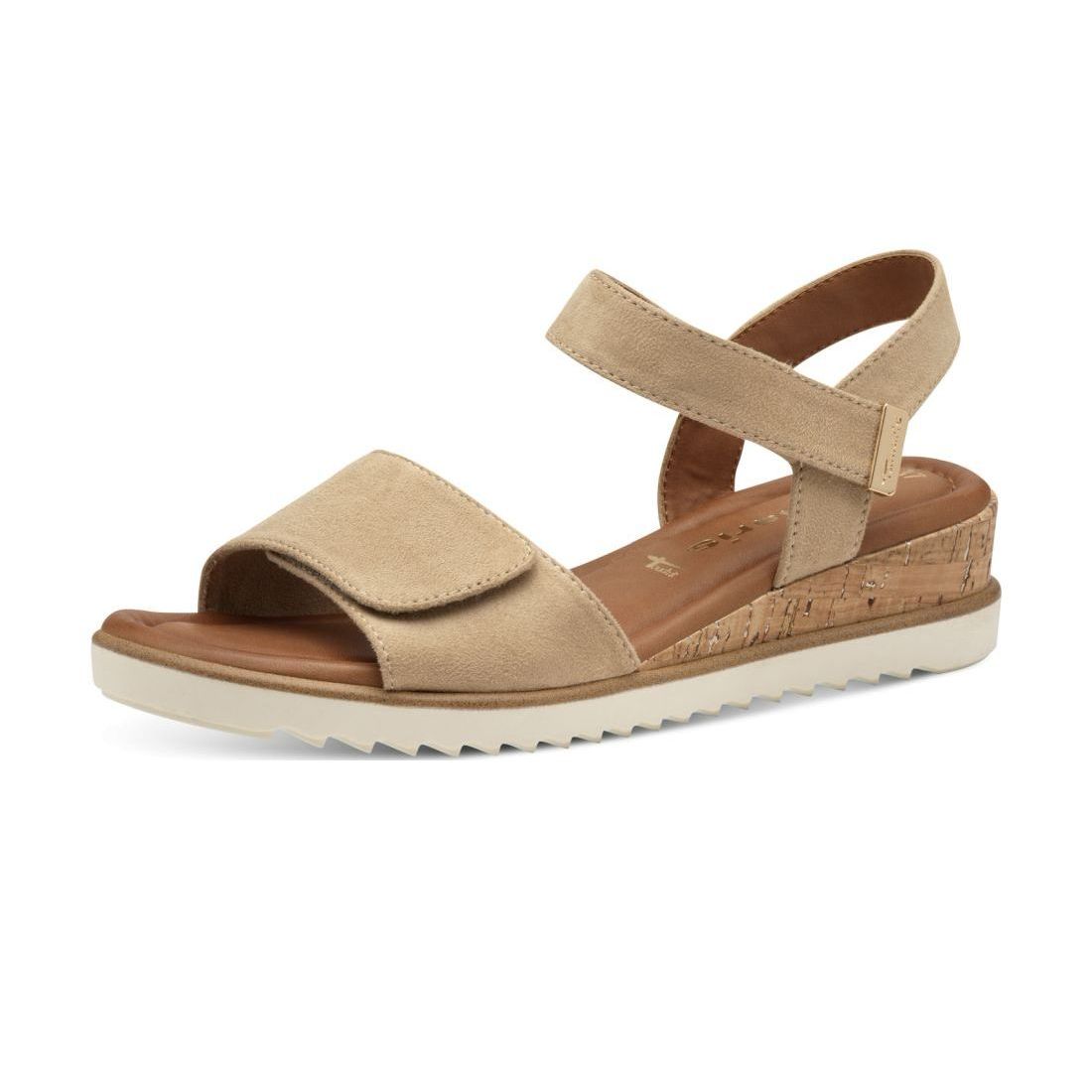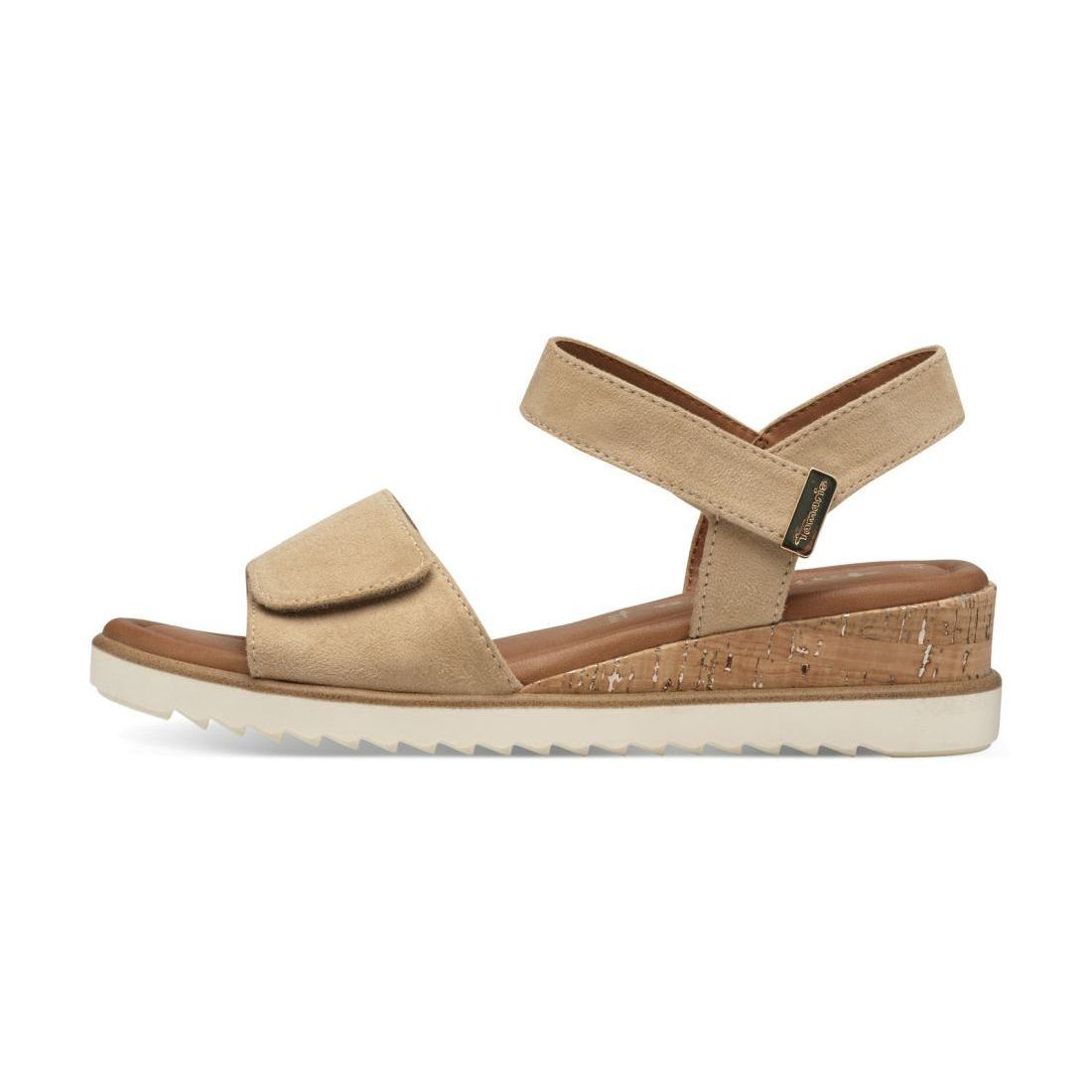 Detailní informace Tento nadčasový model dámských sandálů Tamaris v béžové barvě si rychle oblíbíte. Jsou jednoduché a lehce kombinovatelné s jakýmkoliv oblečením. Díky paměťové Touch-it stélce jsou také velice pohodlné. Přední širší pásek a pásek kolem kotníku je na suchý zíp, díky tomu si můžete upravit šíři obuvi podle svých potřeb. Jednoduchá vyšší podešev doladí Váš outfit do práce nebo na schůzku s přáteli. Hezkým designovým prvkem je horní část klínku v imitaci korku. Užívejte si pohodlí těchto sandálů každý den.