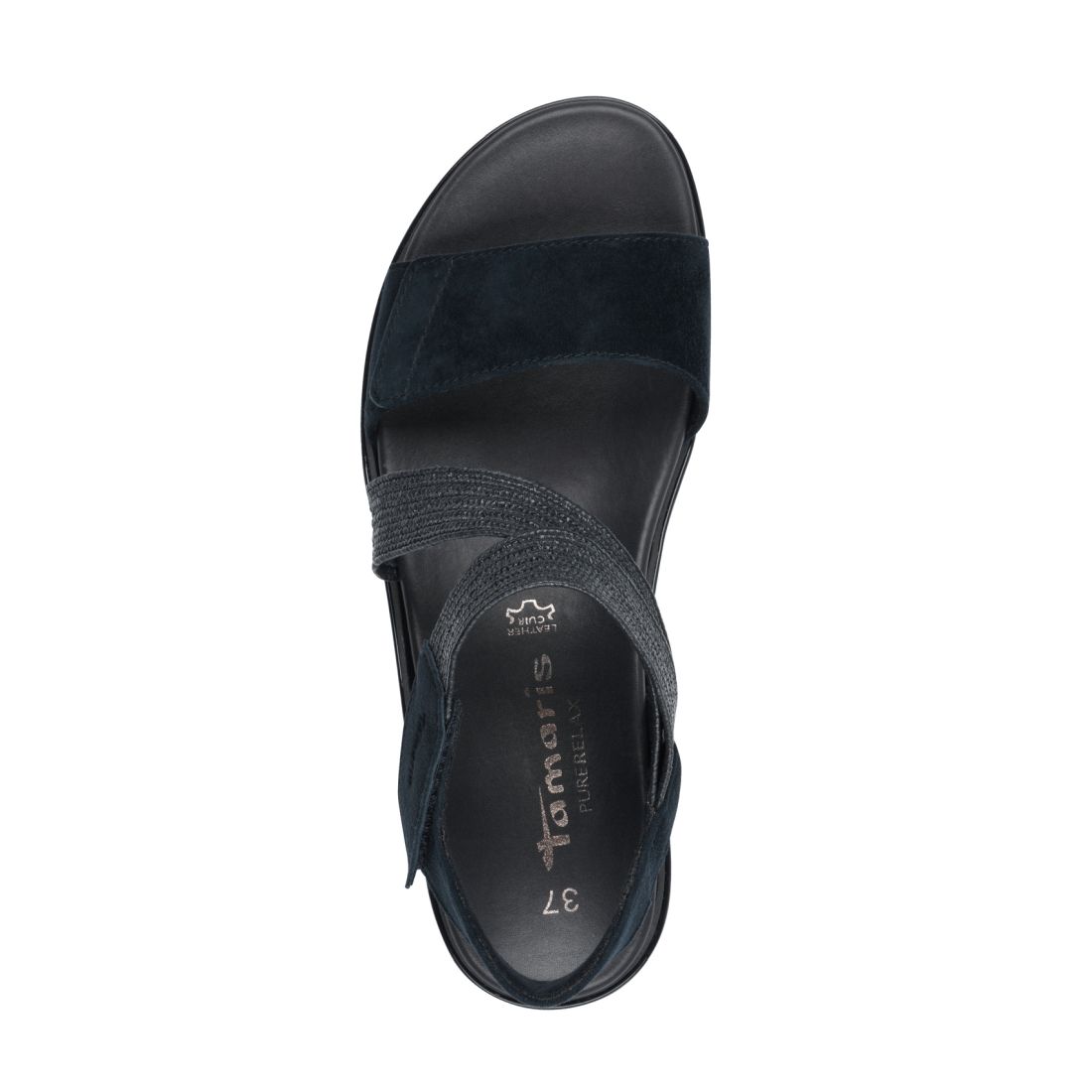 Nádherné dámské sandály Tamaris v tmavě modré barvě, které zaujmou na první pohled svým originálním designem v podobě uspořádání pásků. Jak přední, tak horní pásek má zapínání na suchý zip a tak si šíři obuvi přizpůsobíte svým potřebám. O pohodlí se Vám postará příjemně měkká PureRelax stélka, která je odjímatelná. Lze jí tak kdykoliv vyndat a očistit. Užijte si léto s těmito stylovými sandálkami Tamaris. Technologie: PureRelax - stélka z paměťové pěny, která zajišťuje příjemný došlap, která je navíc odjímatelná a lze ji tak kdykoliv vyndat a očistit.