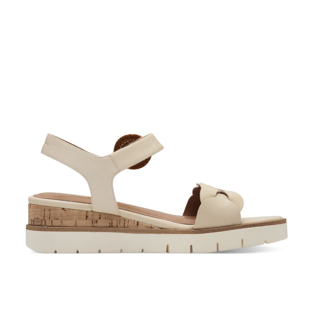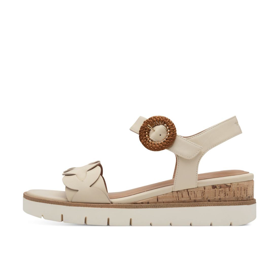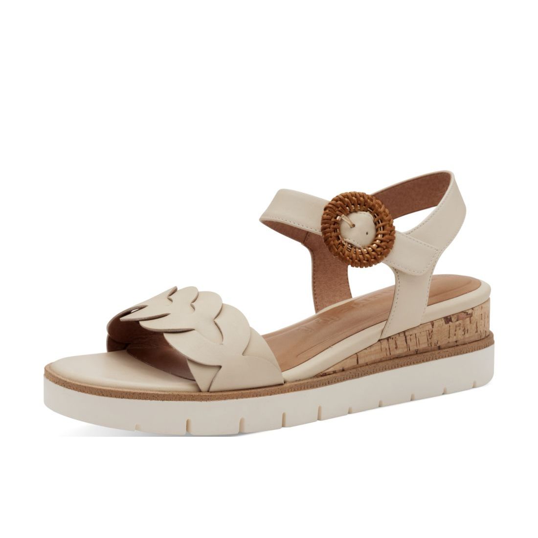 Elegantní kožené sandály Tamaris, béžové barvy, na pohodlném klínku. Na první pohled zaujme proplétaný přední pásek a ozdobná spona na horním pásku. Klínek je ozdoben korkovým detailem. Snadné obouvání budete mít díky pásku se suchým zipem. O pohodlí se Vám postará příjemně měkká Touch-it stélka z paměťové pěny. Technologie: Touch-it - měkká stélka, která se dokonale přizpůsobí tvaru nohy, a díky tomu při nošení zajišťuje optimální pohodlí.