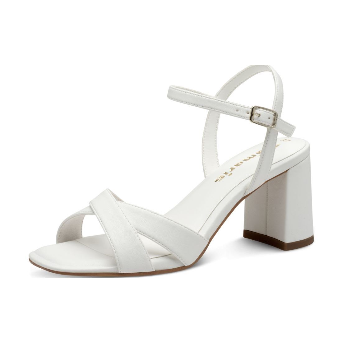 Detailní informace Elegantní dámské sandály Tamaris v bílé barvě, se kterými zazáříte při každé příležitosti. Dva překřížené přední pásky a jemné nastavitelné pásky kolem kotníku nechají vyniknout krásu Vašich nohou. Vše umocňuje nádherně potažený, stabilní podpatek. O pohodlí a bezpečnost při každém kroku se postará příjemně měkká Touch-it stélka a protiskluzný prvek v podpatku s technologií AntiSlide.
