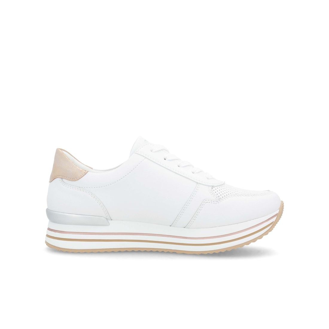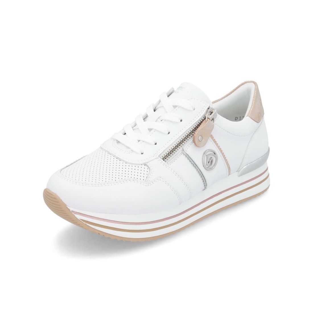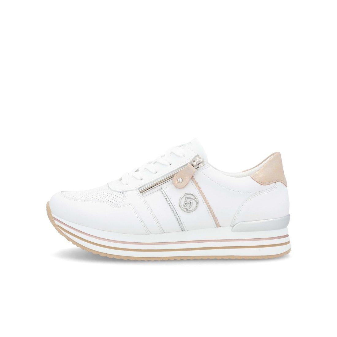 Znáte značku Rieker? Pokud ano, určitě nám dáte za pravdu, že je obuv velmi pohodlná. Značka Remonte je vyšší řadou značky Rieker a zakládá si na vysoké kvalitě a pohodlnosti, proto obuv této značky je vyráběna z vysoce kvalitních materiálů a je často dodávána i v NADMĚRNÝCH velikostech. Tyto stylové tenisky od značky Remonte zaujmou svým originálním designem. Na první pohled zaujme kombinace bílého svršku s metalickými prvky. Díky tkaničkám a fuknčnímu zipu na nártu, se boty snadno obouvají a dokonale se přizpůsobí tvaru Vašeho chodidla. Pohodlí po celý den v těchto botách budete mít díky pohodlné měkké stélce a kvalitní podešvi. Technologie: RemonteSoft - patentovaná technologie stélky z paměťové pěny, která se perfektně přizpůsobí tvaru Vašeho chodidla. Tyto boty mají vyjímatelnou stélku z paměťové pěny, která se perfektně přizpůsobí tvaru Vaší nohy.