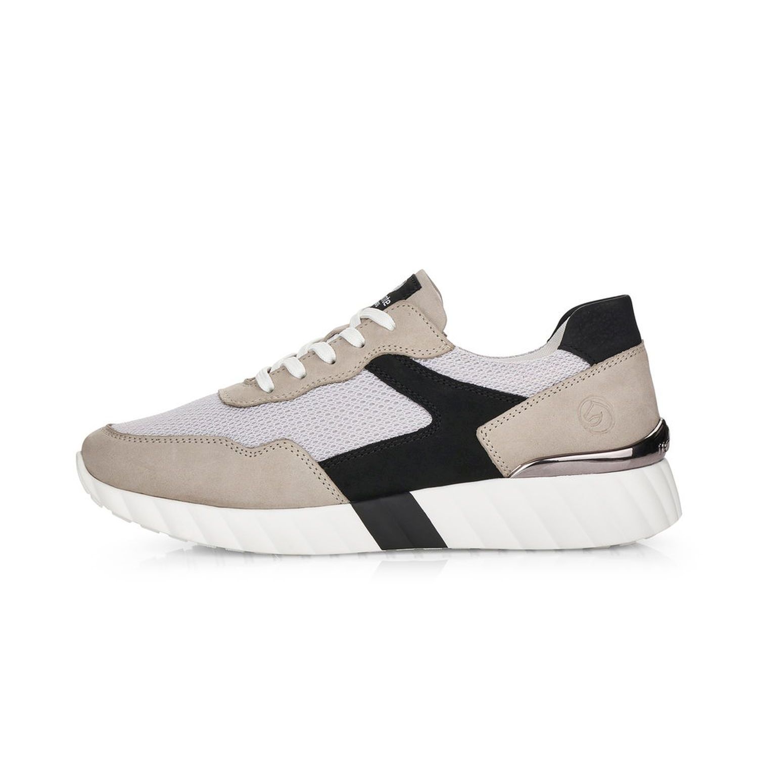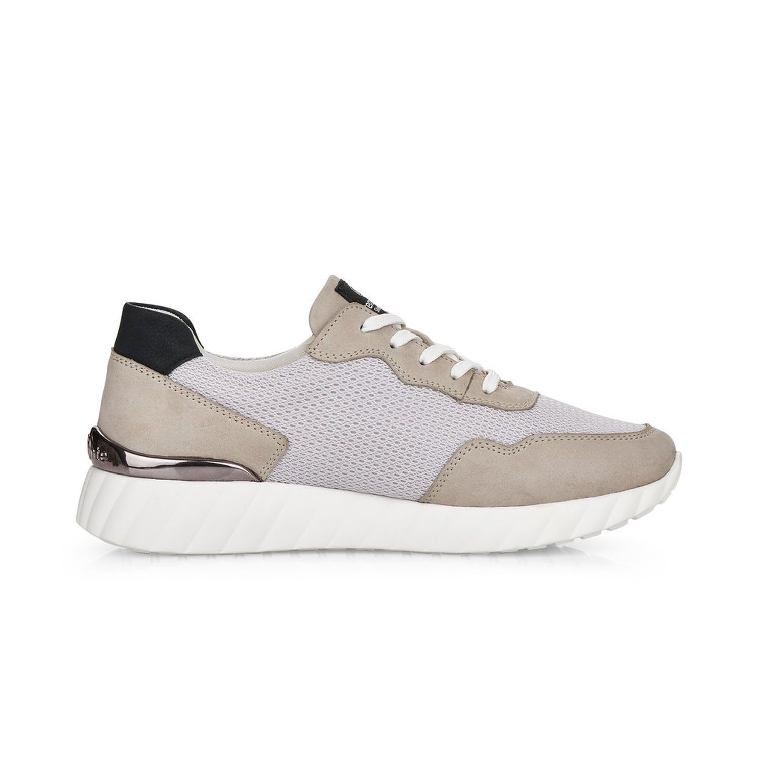 Jemné šedé tenisky s černou aplikací v kombinaci materiálů Vám zajistí pohodlí během celého dne. Díky tkaničkám si obuv přizpůsobíté svým potřebám a kvalitní měkká stélka Vám zaručí maximální pohodlí. Celkový vzhled těchto bot dotváří stříbrná aplikace v patní části. Kombinovat můžete s jakýmkoliv outfitem ať už do práce nebo na procházky. Značka Remonte je vyšší řadou značky Rieker a zakládá si na výběru kvalitních materiálů. Díky dlouholetým zkušenostem a patentované technologii je pod značkou Remonte vyráběna kvalitní a pohodlná obuv, která je prověřena miliony spokojených zákazníků po celém světě. Technologie: RemonteSoft - patentovaná technologie stélky z paměťové pěny, která se perfektně přizpůsobí tvaru Vašeho chodidla. Vyjímatelná stélka.