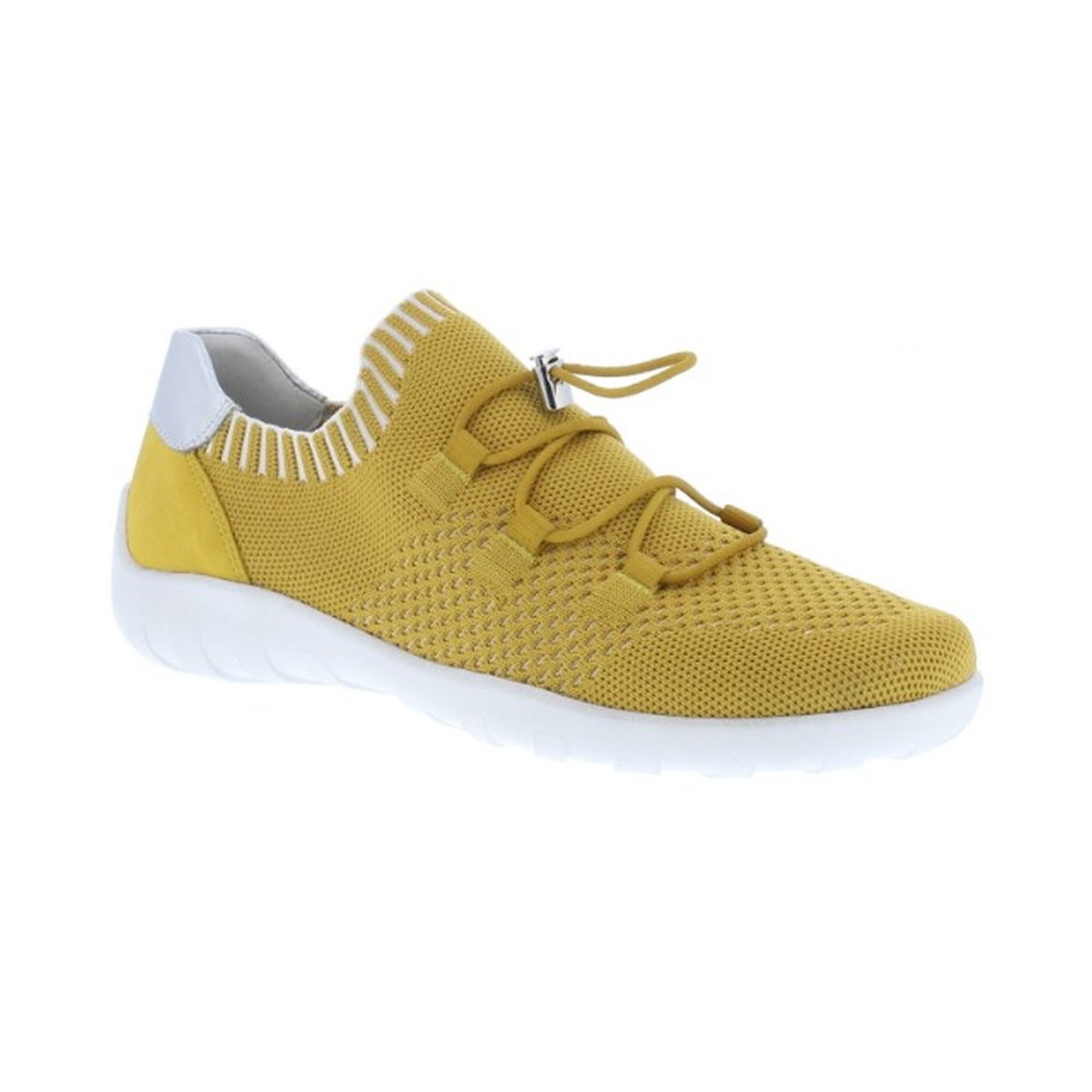 Detailní informace Dámské tenisky Remonte v moderní žluté barvě. Svršek obuvi je kombinací textilu a kvalitní syntetiky. Moderní styl a komfort, to je to co tuto obuv vyznačuje. Pro snadné nazouvání jsou boty vybaveny pružným horním lemem, který se za chůzi perfektně přizpůsobí Vašemu chodidlu. Místo šněrování je použita gumička, kterou si můžete dle potřeby utáhnout. Uvnitř najdete pohodlnou stélku z paměťové pěny, označovanou jako RemonteSoft, která je vyjímatelná a tak ji můžete kdykoliv vyndat, provětrat či vyměnit například za jinou. Tyto boty si určitě rychle zamilujete.