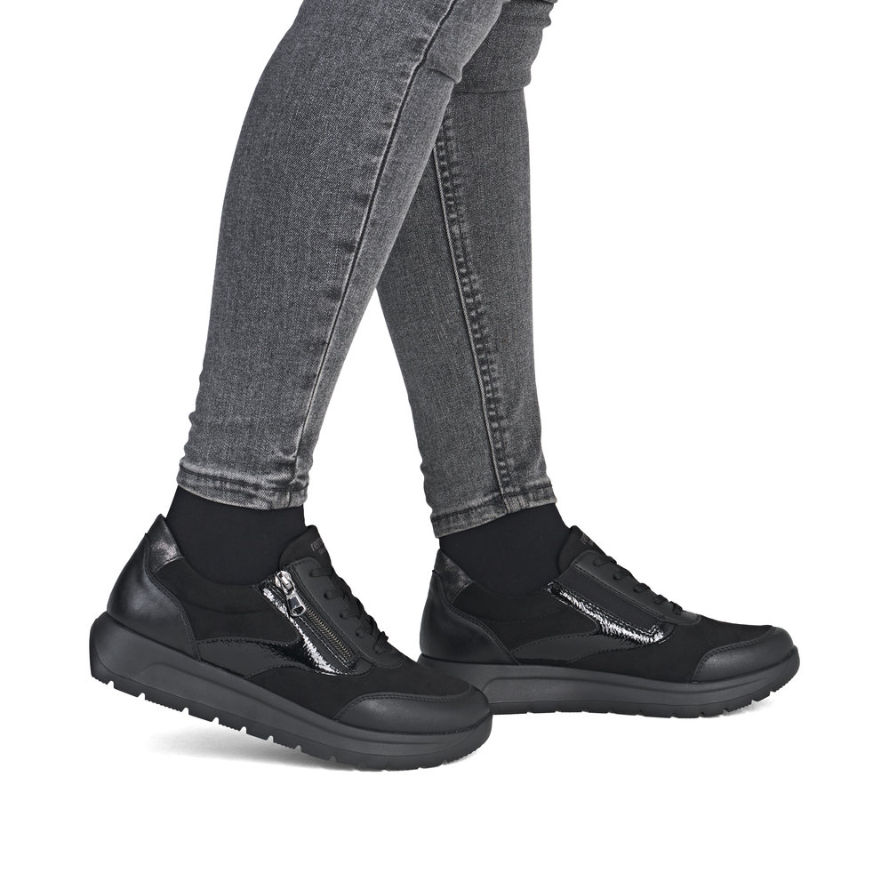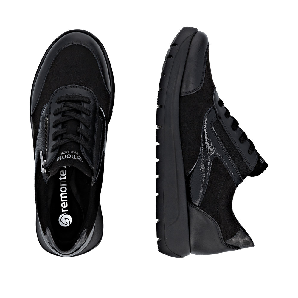 Obuv Remonte je vyšší řadou oblíbené značky Rieker. Vyznačují se především použitím kvalitních materiálů. Tyto tenisky by neměly chybět ve Vašem botníku. Kombinace materiálů, logo na jazyku a vyšší podešev dělá z těchto bot dokonalý model pro moderní ženu. Praktické obouvání pomocí funkčního zipu a tkaniček je parádní. Díky vsazeným pružinkám se obuv ještě lépe přizpůsobí Vaší noze. Pohodlná vyjímatelná stélka z paměťové pěny a lehká podešev Vám dodají pohodlí po celý čas nošení. Tuto obuv snadno sladíte s kalhotami i legínami. Technologie: Remonte Soft - stélka je vyrobena z prodyšného materiálu, jejíž tvar a zvolený materiál Vám zajistí pocit pohodlí po celou dobu nošení. Lite'n Soft - lehká podešev, zvolené materiály a měkká stélka Vám dopřejí maximální komfort. Vegan - pro zodpovědný životní styl bez živočišných materiálů. Šíře H - širší střih bot, který vytvoří dostatečný prostor Vašemu chodidlu a zajistí dokonalý komfort při nošení. Tato obuv má vyjímatelnou stélku z paměťové pěny.