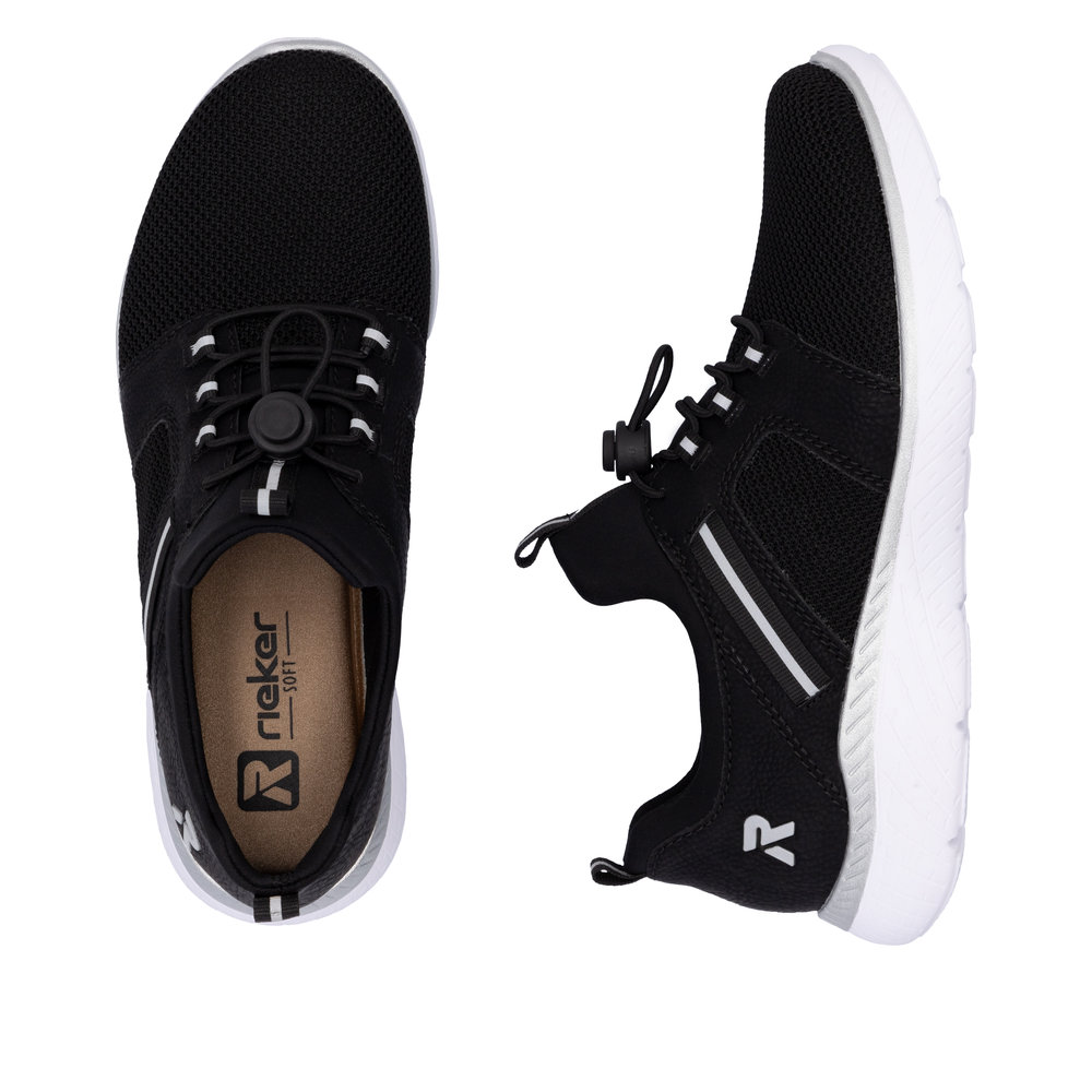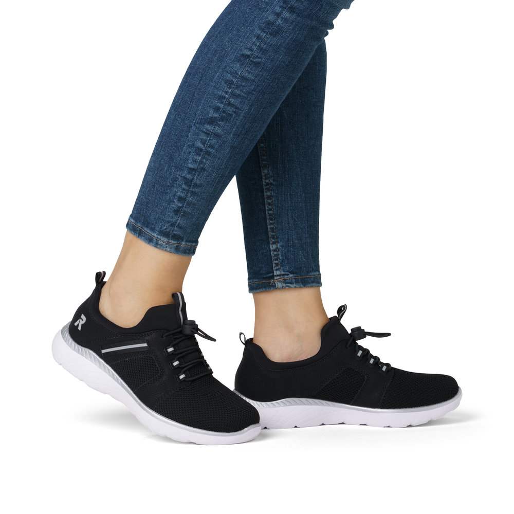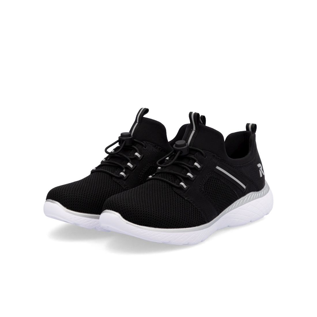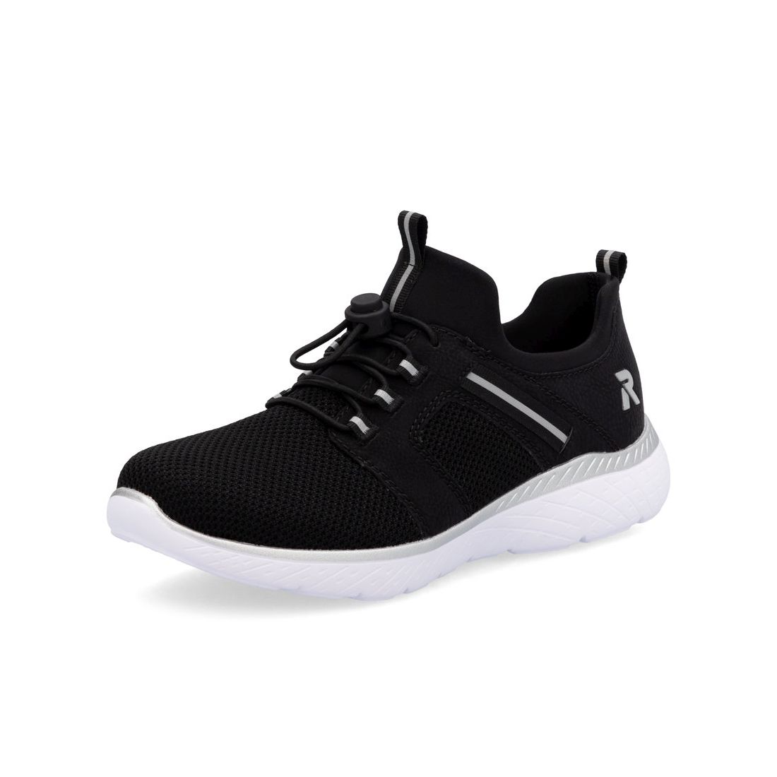 Detailní informace Tyto sportovní tenisky Rieker, černé barvy, musí mít každá moderní žena, která miluje pohyb. Černý textilní svršek je dozdoben kontrastně světlými aplikacemi a nápisem R. Snadné obouvání Vám nabídne pružný horní lem a utahování gumové tkaničky. Díky paměťové stélce MemoSoft a kvalitní podešvi s technologií Antistress budou Vaše chodidla jako v bavlnce.