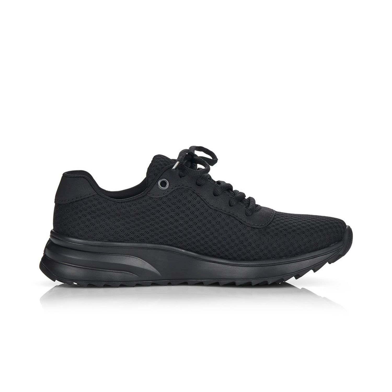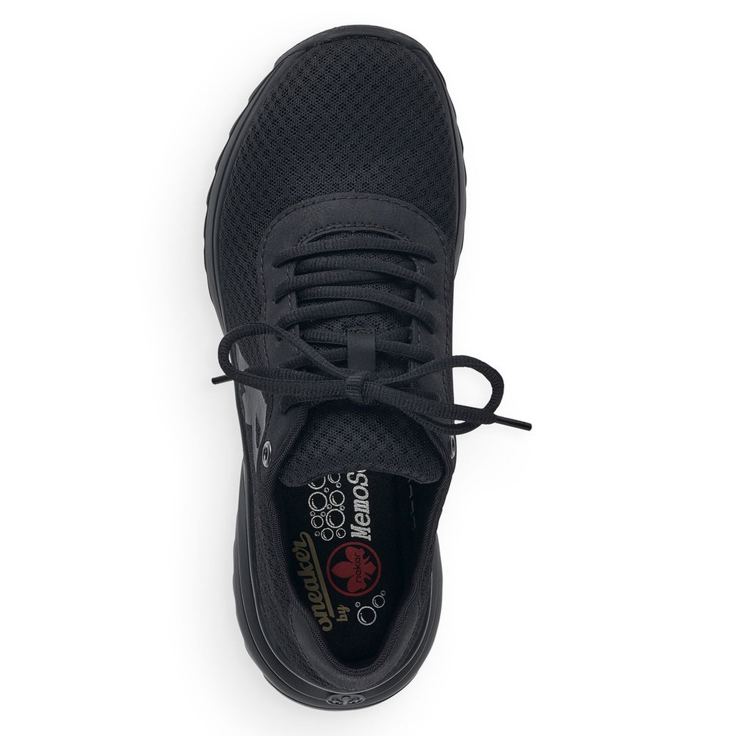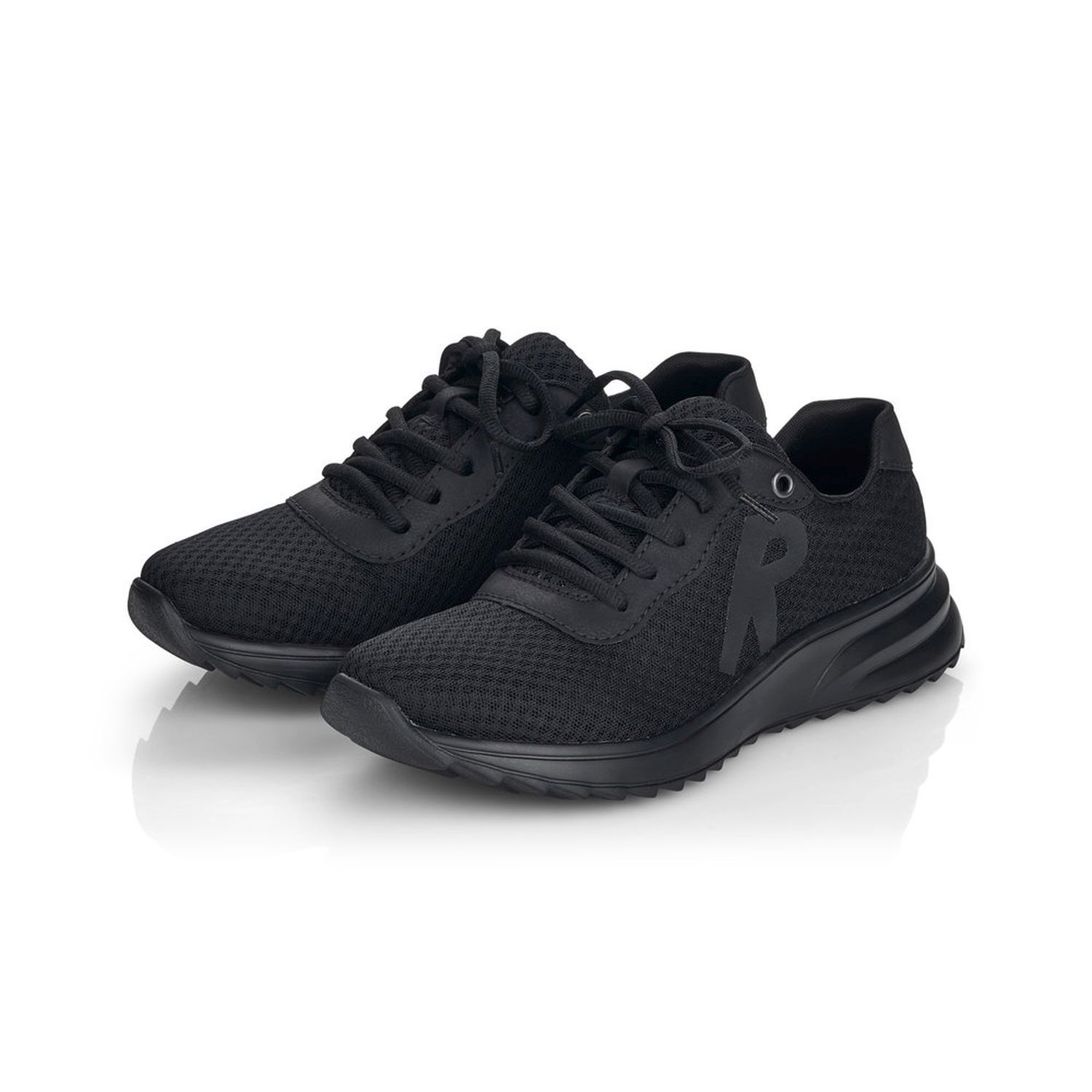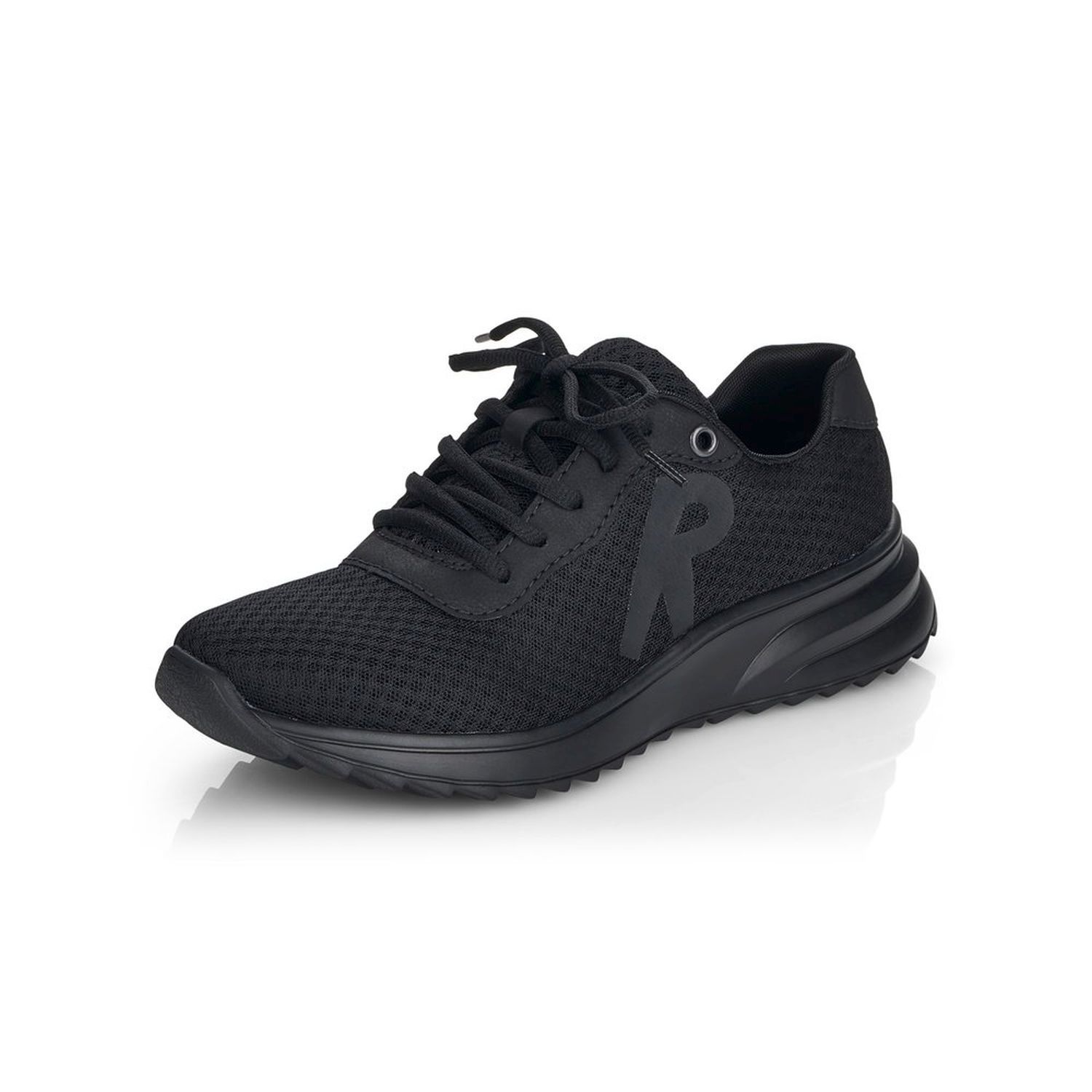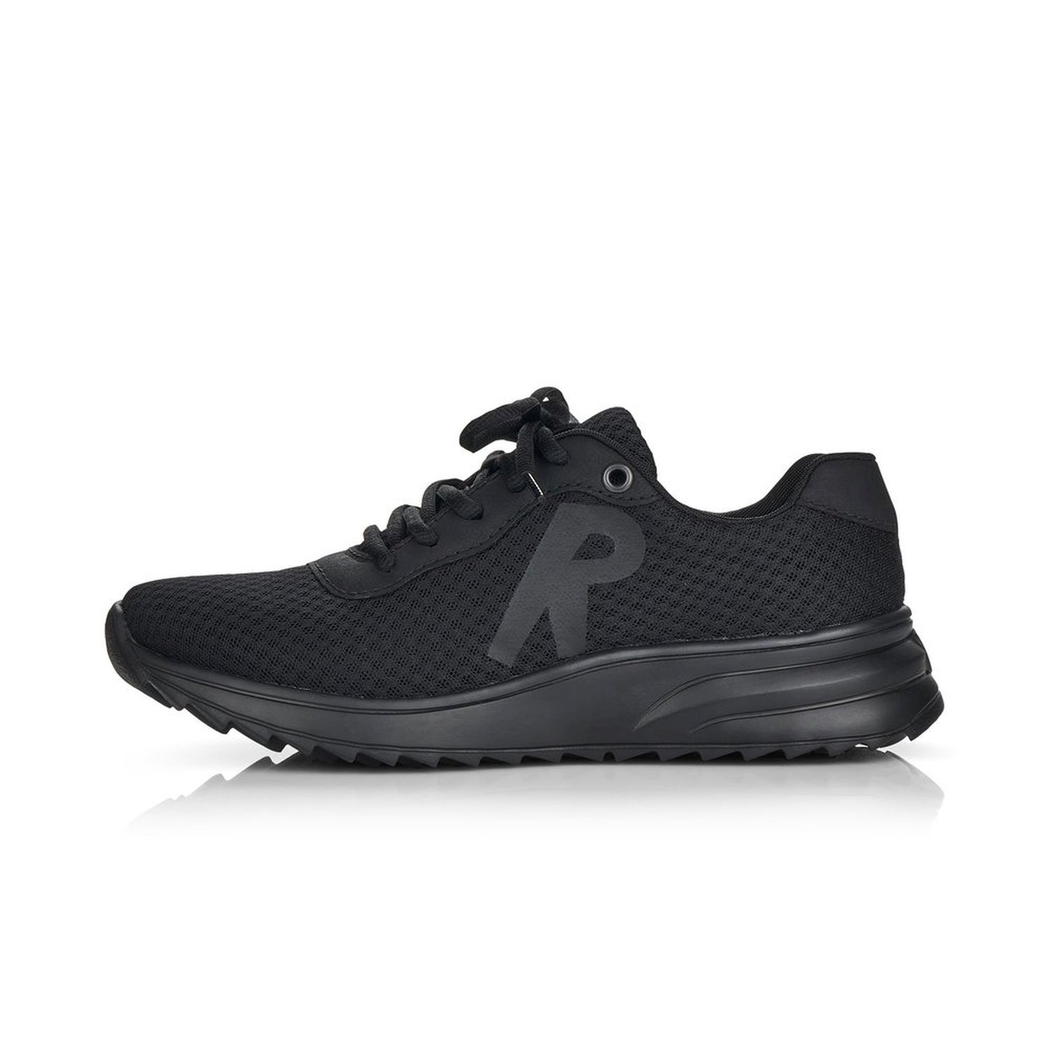 Dámské sportovní tenisky od značky Rieker v černé barvě. Velmi pohodlné, lehké a stylové - to je to co tyto boty vystihuje! Svršek je skoro celý z textilu a z venkovní strany mají ozdobný prvek, velké písmeno R. Díky tkaničkám obuv přizpůsobíte svým nohám přesně tak, jak potřebujete. Výrazným designovým prvkem je vroubkovaná podešev. Pohodlí Vám zajistí vyndavací stélka z paměťové pěny (MemoSoft) a podešev s technologií Antistress, která zaručuje, že je podešev díky této technologii lehká, flexibilní a absorbuje nárazy a otřesy při došlapu. Tyto boty se skvěle hodí na procházku přírodou ale i na celodenní chození po městě.