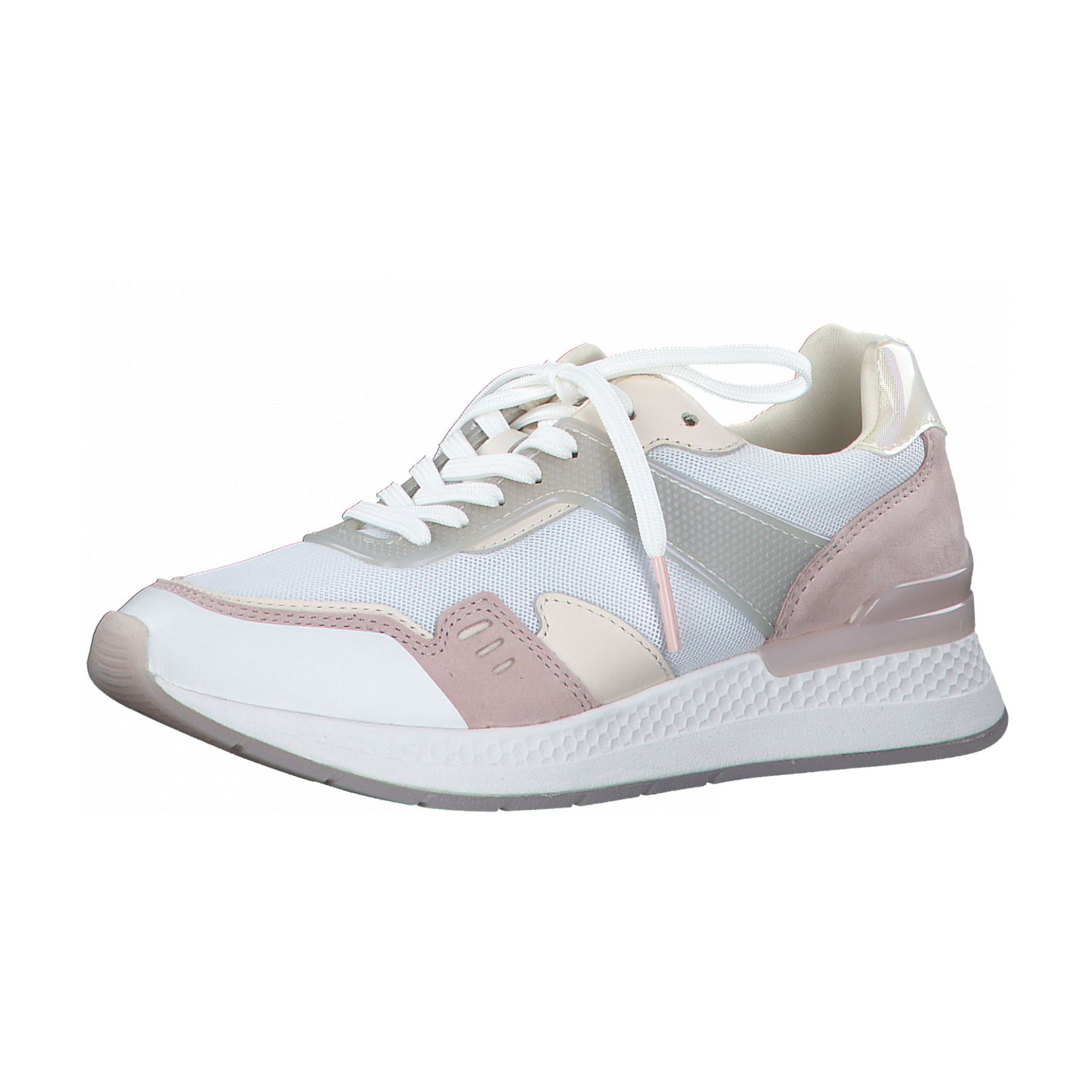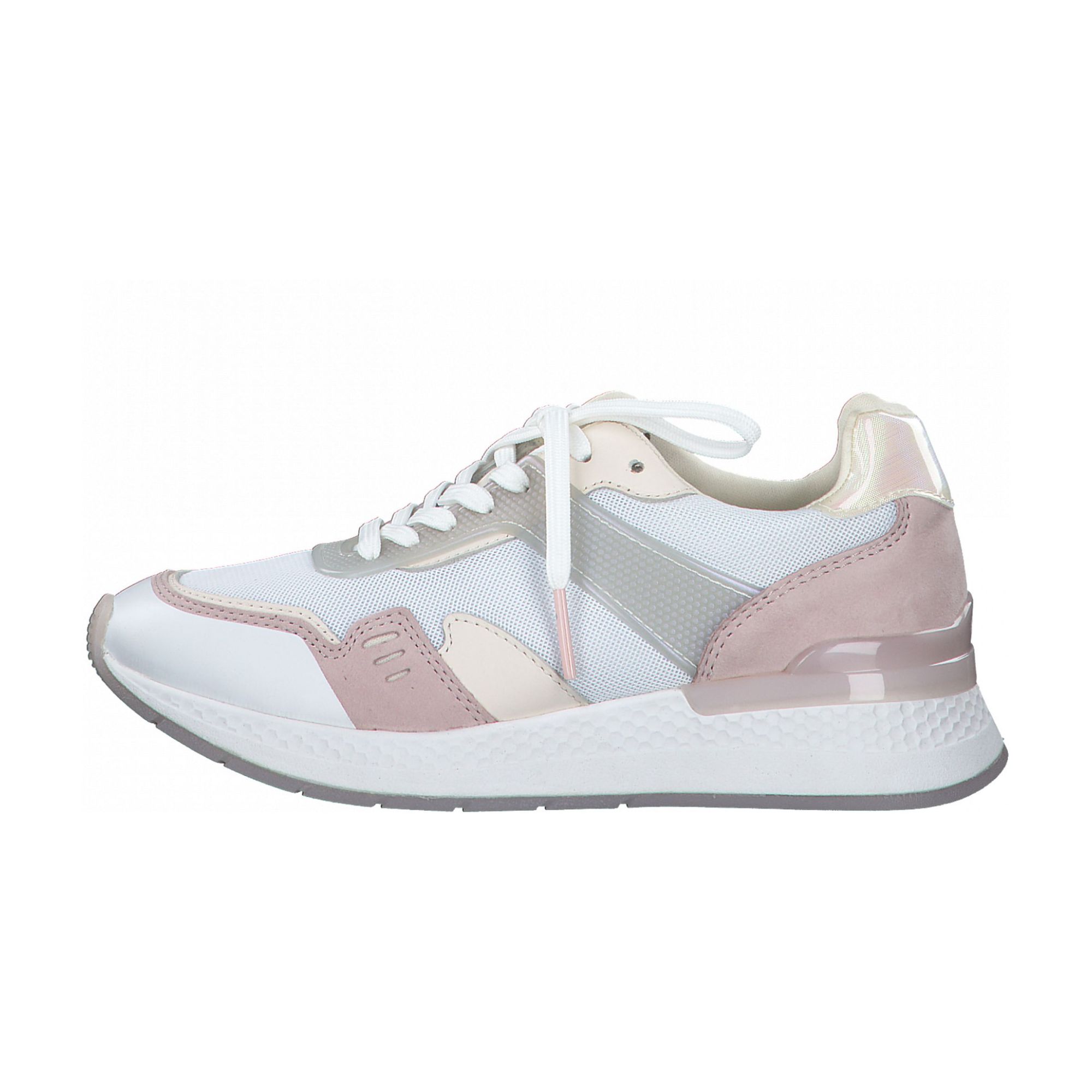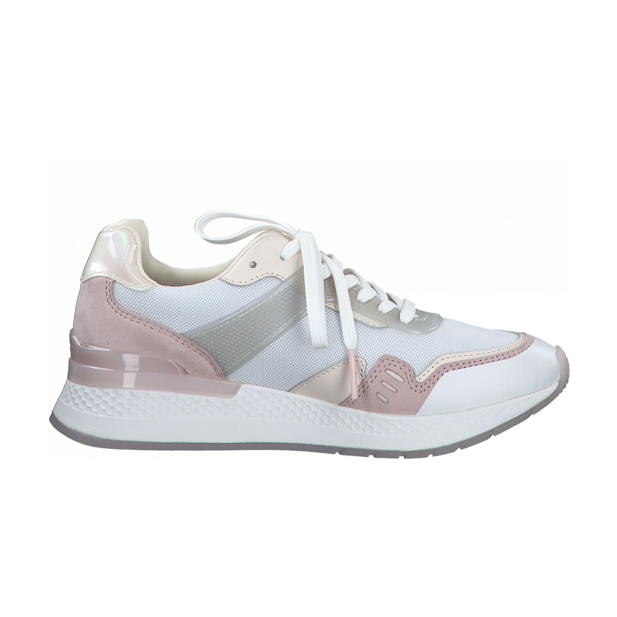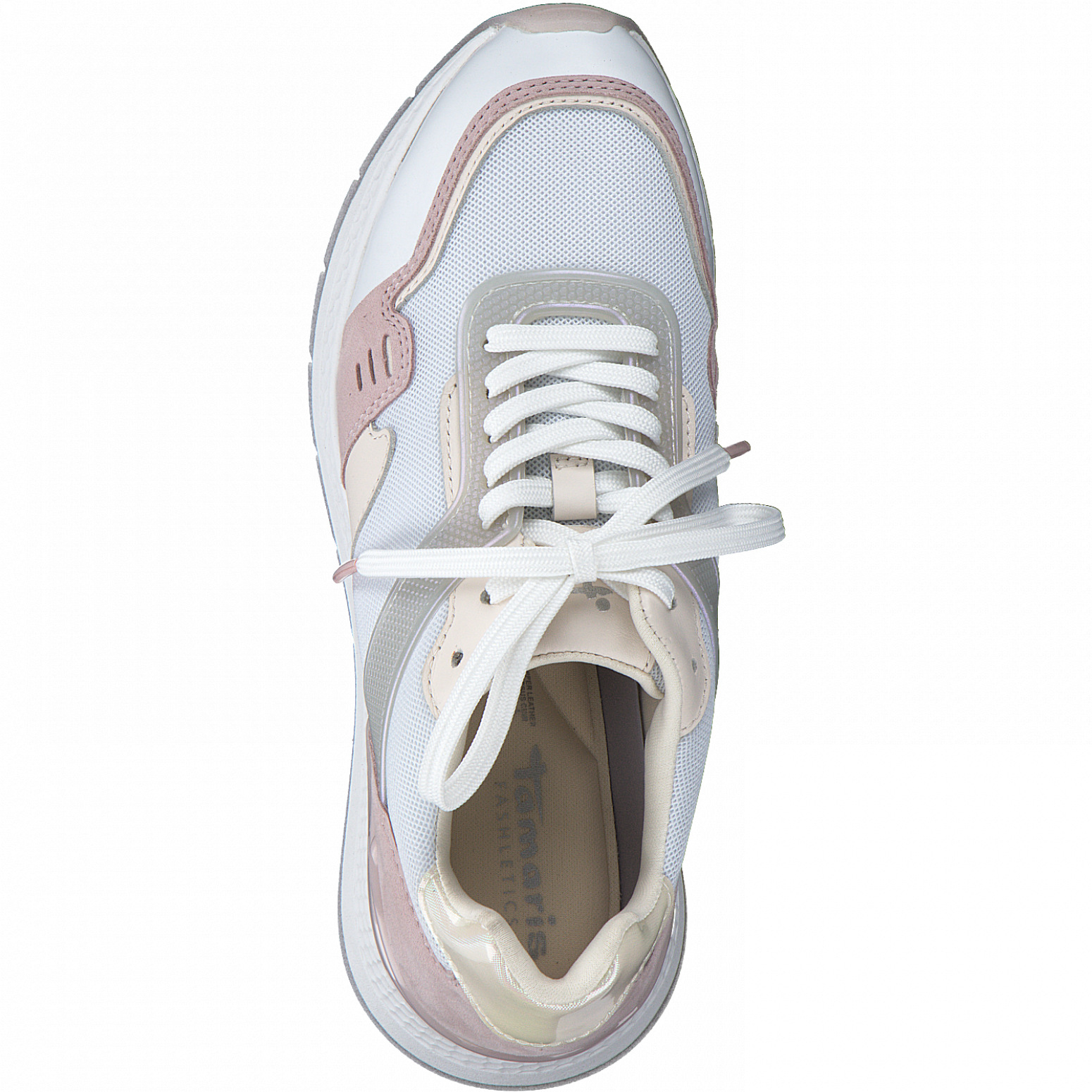 Detailní informace Moderní dámské tenisky značky Tamaris v bílo-růžové barvě. Jde o řadu Fashletics, což vždy zaručuje spojení sportovní řady s aktuální módou. Svršek obuvi je kombinací přírodní kůže a kvalitního textilního materiálu, který zajistí, že je obuv vzdušná a lehká. Zajímavým designovým prvkem je lesklý proužek v patní části, ve zlaté barvě a bílá kontrastní podešev.