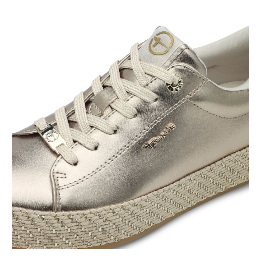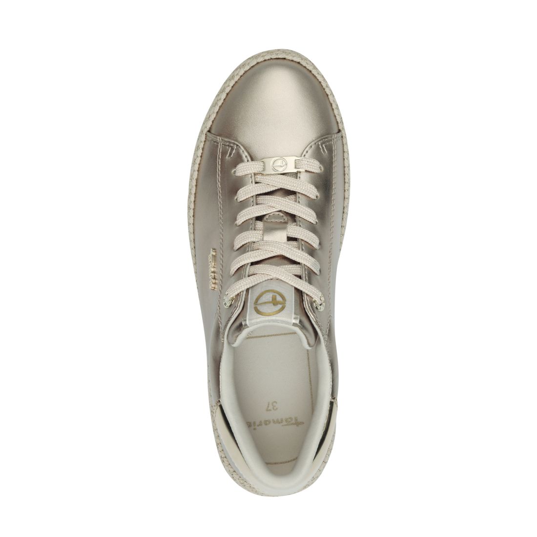 Originální dámské tenisky Tamaris ve zlaté barvě, které budou ozdobou Vašeho outfitu. Na první pohled zaujme vyšší podešev béžové barvy, která skvěle doplňuje lesklý svršek obuvi. Celkový design doplňují doplňky ve zlaté barvě. Díky tkaničkám si boty můžete utáhnout dle svých potřeb. Tyto boty se perfektně hodí k džínám či sukni.