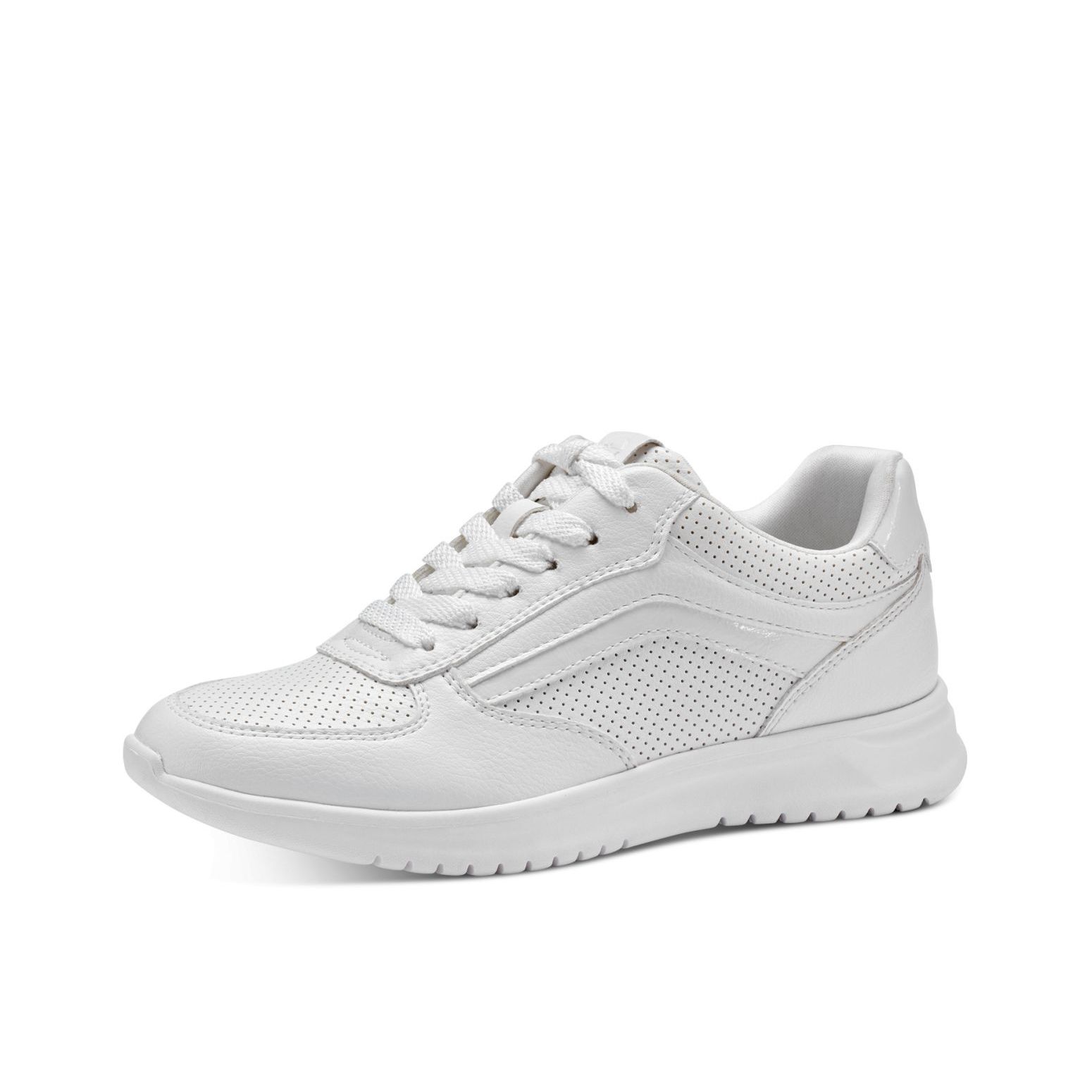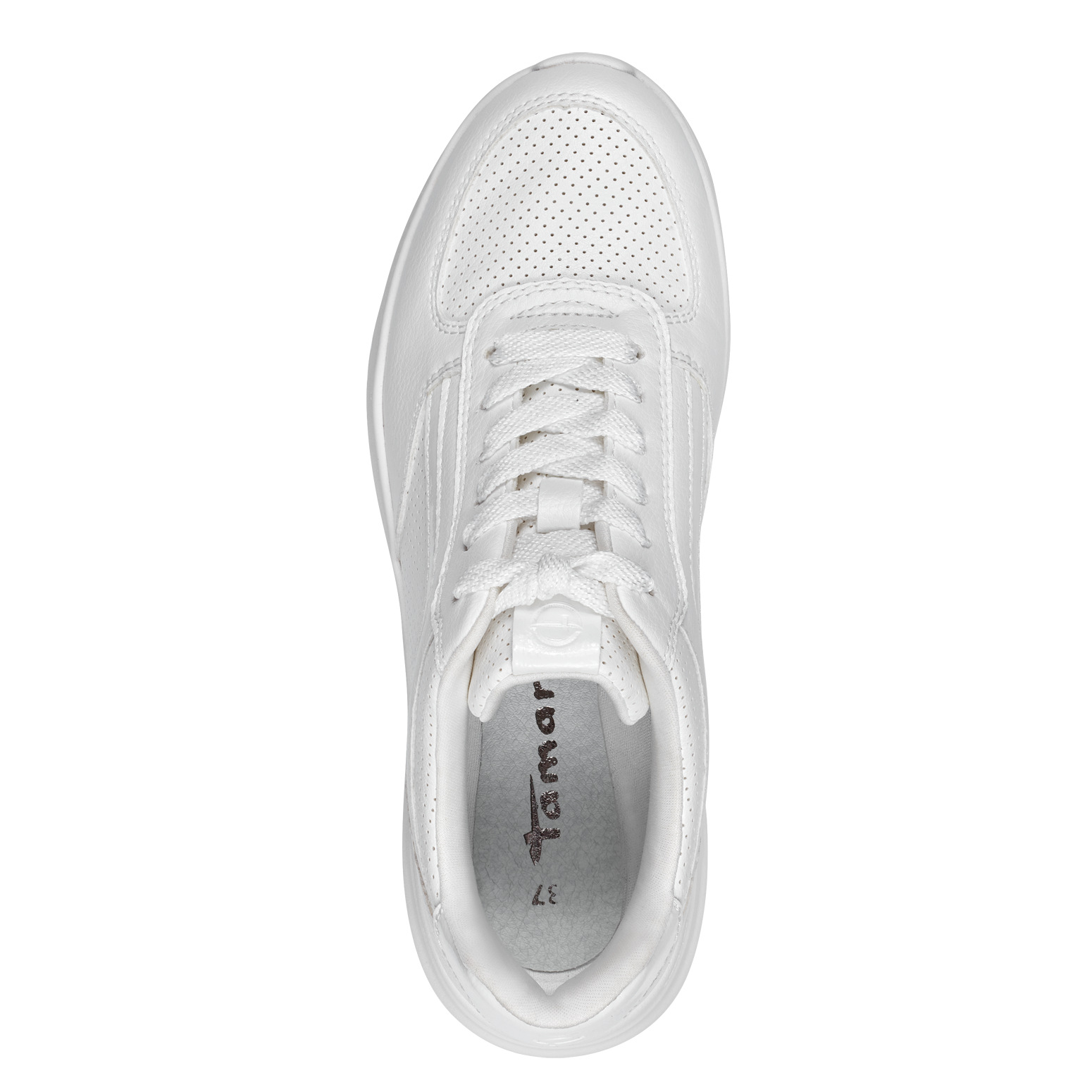 Tyto zajímavé dámské tenisky Tamaris bílé barvy, s jemnou perforací a jemnmi liniemi kolem celé obuvi si zamilujete. Celkový vzhled obuvi je podtžen vlnkovou podešví. Pomocí tkaniček si obuv přizpůsobíte svým nohám. O pohodlí se postará měkká vyjímatelná stélka. Tyto boty se skvěle hodí k jakémukoliv outfitu. Podívejte se i na další barevnou variantu, kterou nabízíme na našem e-shopu (platí do vyprodání zásob). Technologie: Vyjímatelná stélka