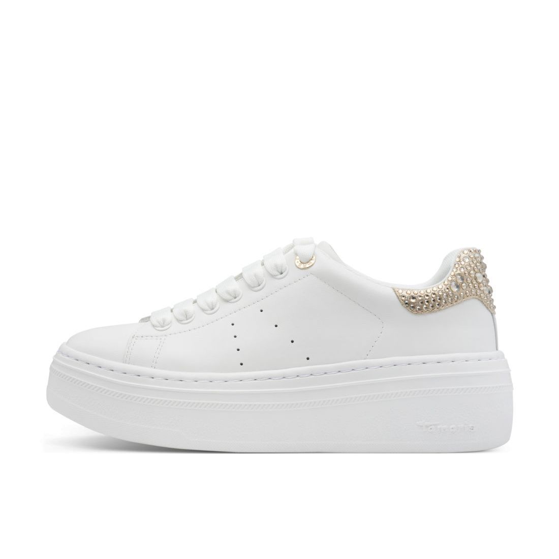 Krásné dámské tenisky Tamaris bílé barvy, v jednoduchém stylu, dolaněny kamínky, na vysoké podešvi, která zvýrazní Vaší osobnost. V této obuvi vydržíte po celý den díky měkké vyjímatelné stélce z paměťové pěny, která se přizpůsobí tvaru chodidla. Tento model vynosite k riflím, legínám i sukni. Tenisky by neměly chybět v botníku moderní ženy. Technologie: Touch-it - měkká stélka, která se dokonale přizpůsobí tvaru nohy, a díky tomu při nošení zajišťuje optimální pohodlí. Tato obuv má vyjímatelnou stélku z paměťové pěny.