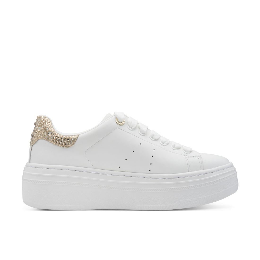 Detailní informace Krásné dámské tenisky Tamaris bílé barvy, v jednoduchém stylu, dolaněny kamínky, na vysoké podešvi, která zvýrazní Vaší osobnost. V této obuvi vydržíte po celý den díky měkké vyjímatelné stélce z paměťové pěny, která se přizpůsobí tvaru chodidla. Tento model vynosite k riflím, legínám i sukni. Tenisky by neměly chybět v botníku moderní ženy.