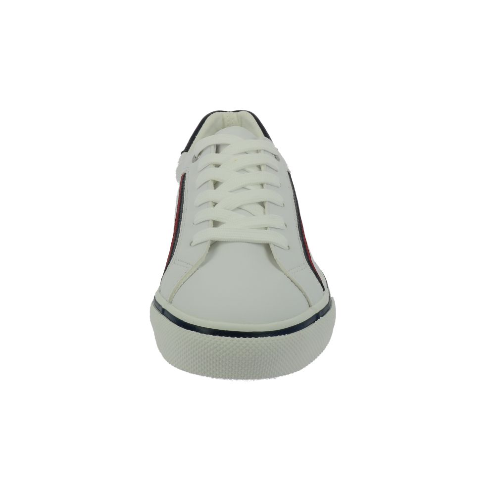 Detailní informace Dámské tenisky Tom Tailor v bílé barvě doplněné červenými a tmavě-modrými prvky. Svršek je z kvalitní syntetiky. Z vnější strany na boku a v patní části je ozdobný nápis Tom Tailor. Zesílený materiál na špici zajistí maximální ochranu prstů. Díky šněrování si boty můžete přizpůsobit přesně podle svých představ. Uvnitř najdete pohodlnou stélku. Tento styl obuvi je vhodný jak na běžné procházky, tak do práce či na nákupy.