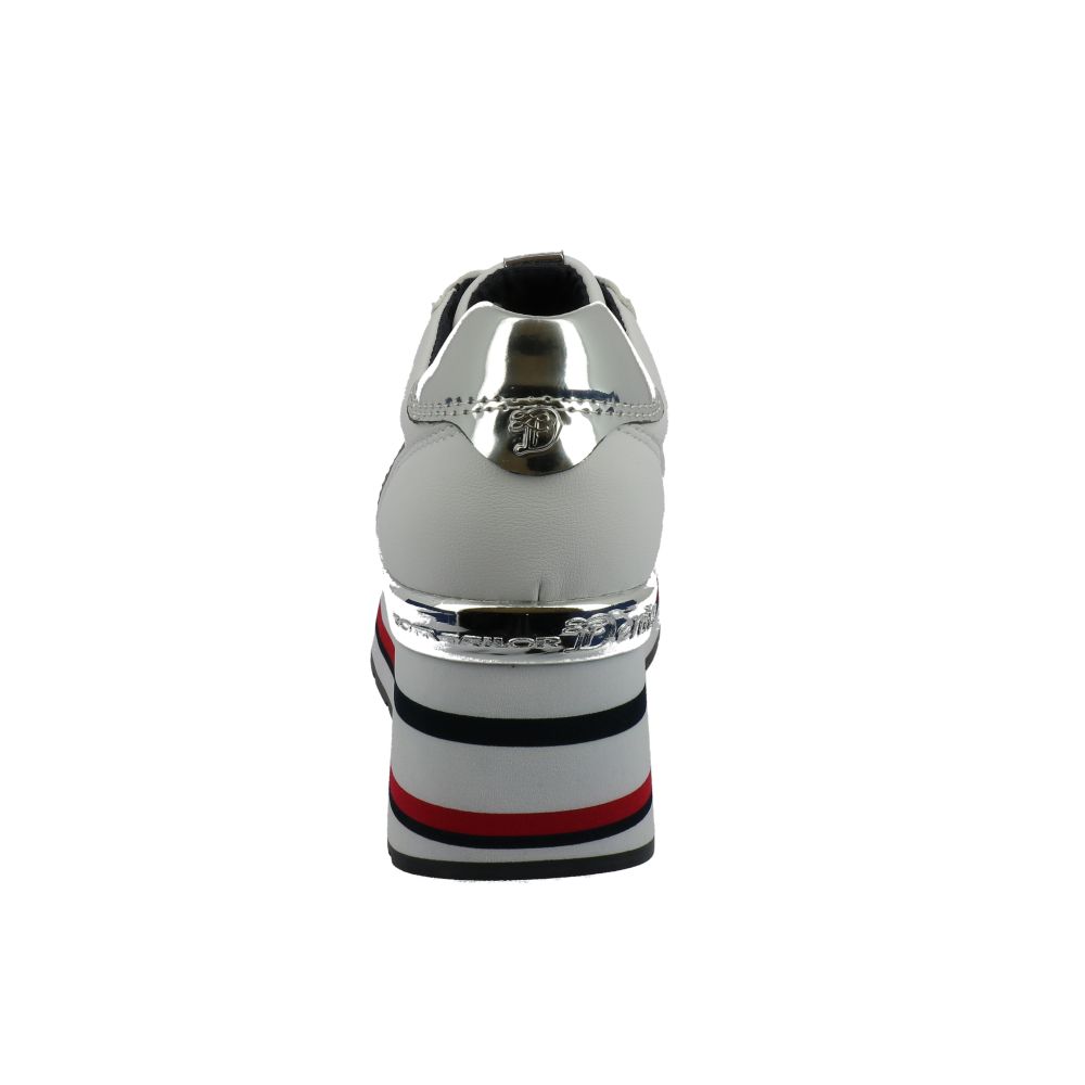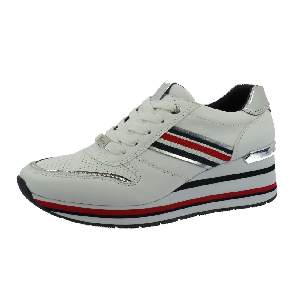 Hledáte tenisky, které by Vám přidaly o pár centimetrů navíc? Právě jste je našla. Tyto dámské tenisky značky Tom Tailor, sportovního typu na vyšším klínku si jistě zamilujete. Uvnitř najdete pohodlnou stélku z paměťové pěny. Svršek v bílé barvě je doladěn červeno-modrými pruhy a lesklými částmi na více místech na svršku obuvi. V přední části je svršek perforvaný. Pomocí tkaniček si upravíte šířku boty přesně podle své představy. Tento model je velmi pohodlný. Technologie: Stélka z paměťové pěny.