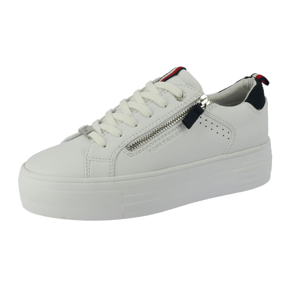 Stylové dámské tenisky značky Tom Tailor v bílé barvě na vyšší podešvi. Svršek je kombinací syntetiky a textilu. Ozdobným prvkem je z vnější strany zip a pod ním nápis Tom Tailor. Díky šněrování si upravíte šířku boty přesně podle svých představ. Uvnitř najdete pohodlnou stélku. Tento model se Vám bude dobře ladit s ostatními outfity. Podívejte se i na další barevnou kombinaci, kterou nabízíme na našich stránkách. Technologie: Stélka z paměťové pěny.