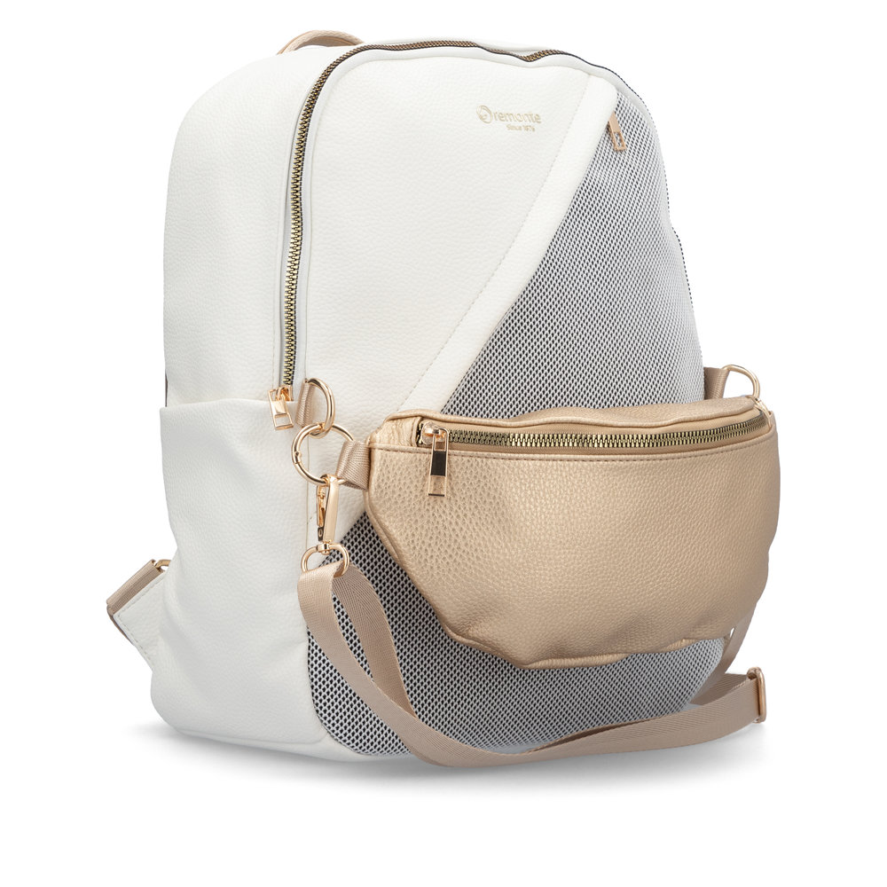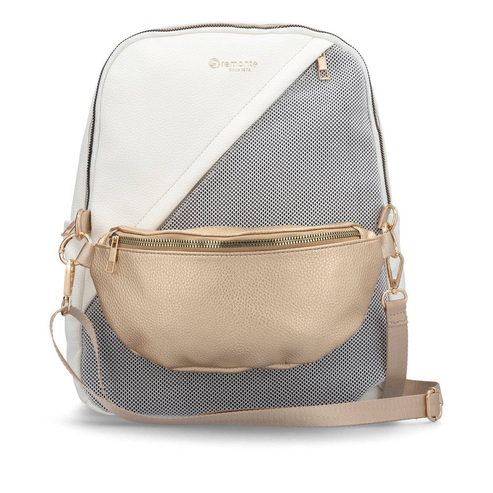 Moderní dámský batoh od značky Remonte zaujme na první pohled svým originálním designem a promyšleným uspořádáním úložného prostoru. Přední kapsička je odepínatelná a tak ji lze použít i samostatně jako ledvinku. Z přední i zadní strany je kapsička na zip. Uvnitř najdete menší přihrádky na drobnosti. Z horní strany je zip, který uzavírá vnitřní prostor. Popruhy jsou délkově nastivetelné pro pohodlné nošení. Tento stylový batoh si rychle zamilujete.
