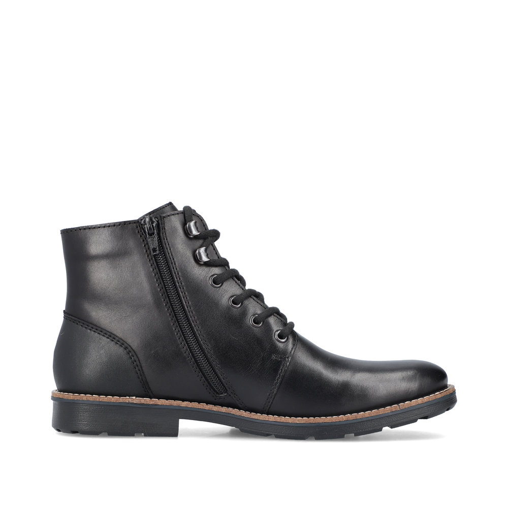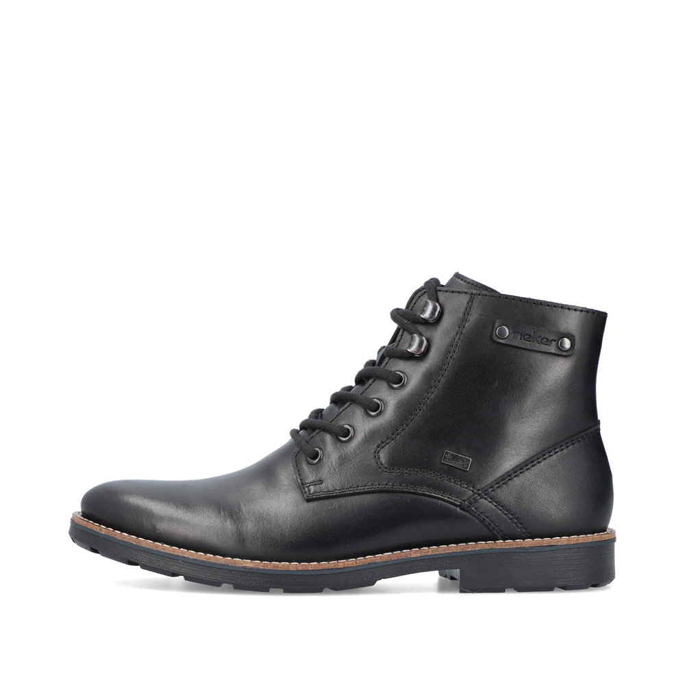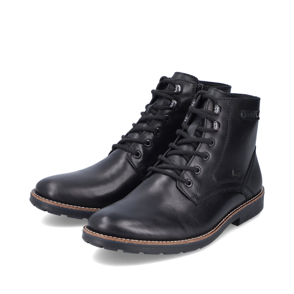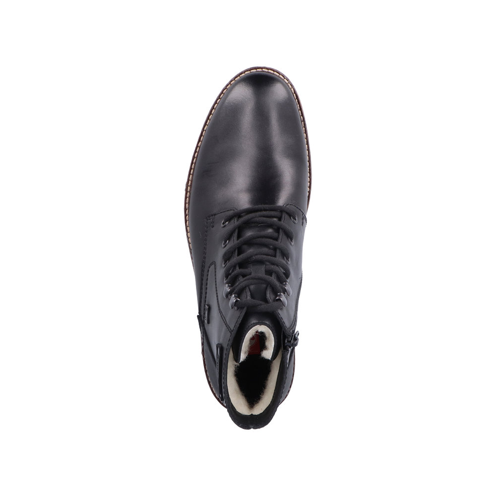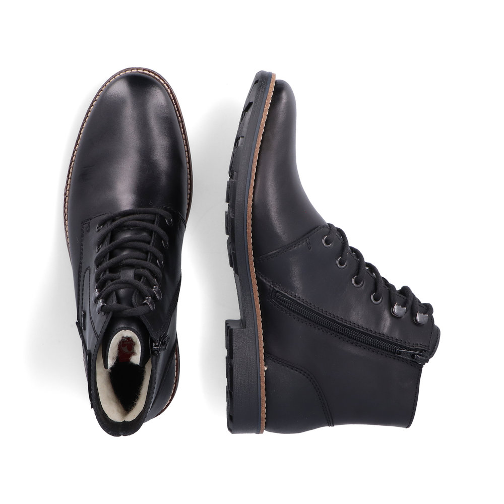 Elegantní pánské kotníkové boty od značky Rieker, které si zamilujete po prvním obutí. Obuv je velmi pohodlná. V chladných zimních dnech Vás zahřeje podšívka z pravé ovčí vlny. Svrchní materiál je kombinací kvalitní syntetiky a přírodní kůže. Díky nepromokavé membráně s technologií RiekerTex se nestane, že by Vám do obuvi zateklo. Obouvání Vám usnadní zip z vnitřní strany a díky tkaničkám si obuv utáhnete podle svých potřeb. Jsou vhodné jak na vycházky s přáteli, tak na cestu do práce. Technologie: RiekerTEX - obuv s tímto označením je prodyšná, ale zároveň odolná vůči vodě. Je to díky zvolenému výrobnímu procesu, kdy mezi svrchní díl a podšívku je vložena goretexová membrána. Díky tomu má obuv optimální ochranu proti vlhkosti a výbornou ochranu proti chladu. Antistress - podešev je díky této technologii lehká, flexibilní, absorbuje nárazy při došlapu a snadno se přizpůsobí každé noze. Podšívka je z pravé ovčí vlny. Výrobní způsob obuvi - lepená obuv.