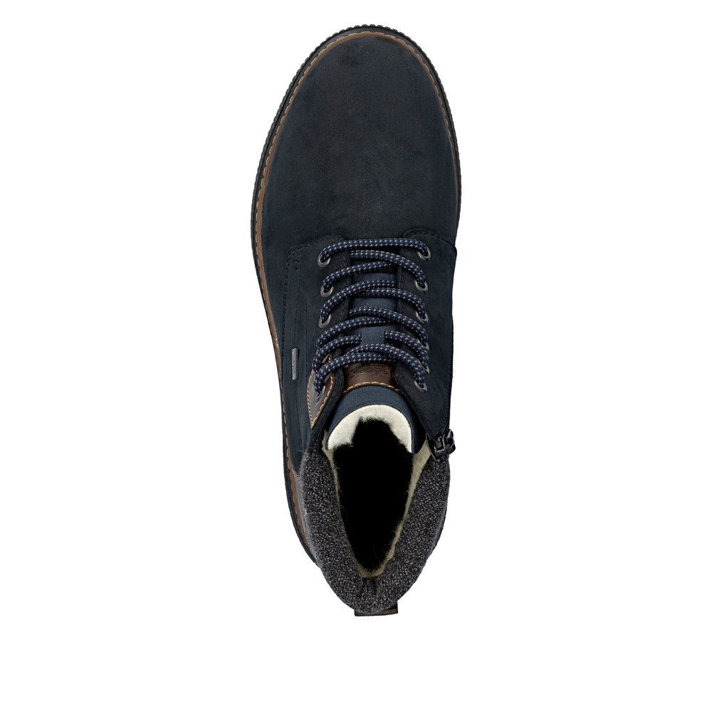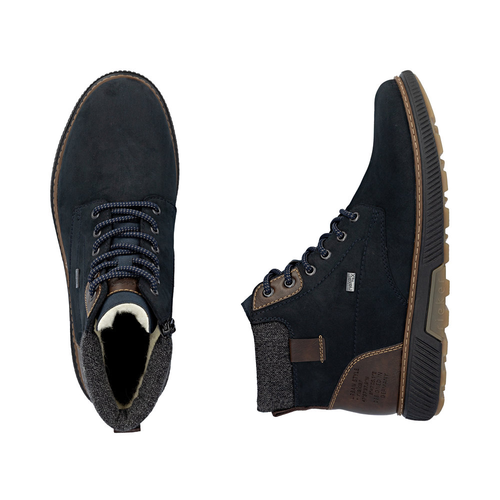 Tento model od značky Rieker si zamilujete. Tyto pánské zimní boty v modré barvě jsou doladěny hnědými prvky, logem a modrými tkaničkami. Díky zipu na vnitřní straně obuvi si obuv snadno a rychle obujete a pomocí tkaniček si obuv přizpůsobíte svým potřebám. Hřát Vás bude podšívka z pravé ovčí vlny, oceníte také vyjímatelnou stélku z paměťové pěny. Flexibilní podešev se přzpůsobí Vaší chuzi, takže se budete cítit příjemně celý den. Díky texové membráně bude obuv uvnitř suchá a vzdušná. Tento model si najde své místo ve Vašem botníku. Technologie: Antistress - podešev je díky této technologii lehká, flexibilní, absorbuje nárazy při došlapu a snadno se přizpůsobí každé noze. Softfoam -stélka je vyrobena z paměťové pěny, která se perfektně přizpůsobí tvaru Vašeho chodidla. RiekerTEX - obuv s tímto označením je prodyšná, ale zároveň odolná vůči vodě. Je to díky zvolenému výrobnímu procesu, kdy mezi svrchní díl a podšívku je vložena goretexová membrána. Díky tomu má obuv optimální ochranu proti vlhkosti a výbornou ochranu proti chladu. Podšívka z pravé ovčí vlny.