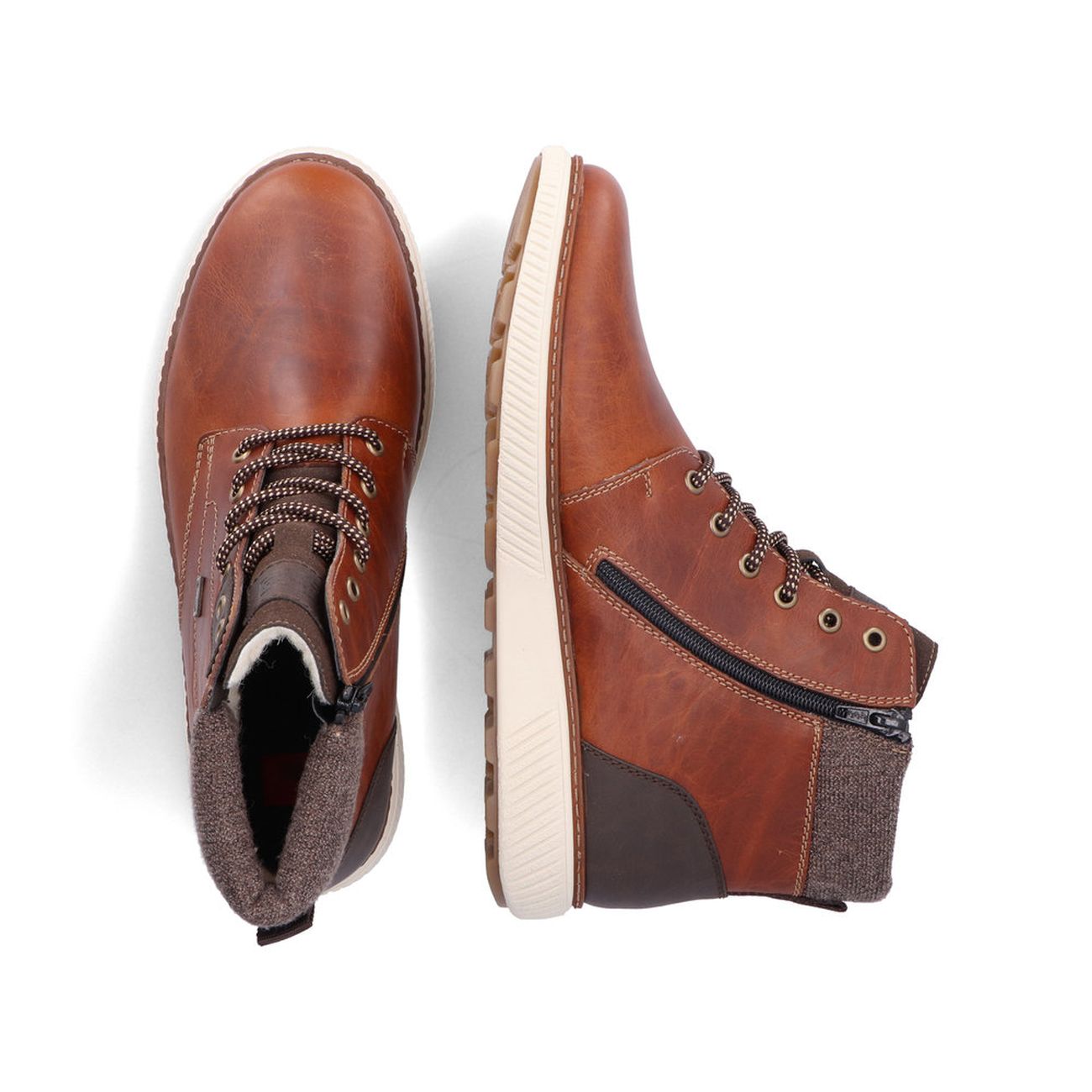 Tento model od značky Rieker si zamilujete. Tyto pánské zimní boty v hnědé barvě jsou doladěny tmavšími prvky za opatkem a logem. Díky zipu na vnitřní straně obuvi si obuv snadno a rychle obujete a pomocí tkaniček si obuv přizpůsobíte svým potřebám. Hřát Vás bude podšívka z pravé ovčí vlny, oceníte také vyjímatelnou stélku z paměťové pěny. Flexibilní podešev se přzpůsobí Vaší chuzi, takže se budete cítit příjemně celý den. Díky texové membráně bude obuv uvnitř suchá a vzdušná. Tento model si najde své místo ve Vašem botníku. Technologie: Antistress - podešev je díky této technologii lehká, flexibilní, absorbuje nárazy při došlapu a snadno se přizpůsobí každé noze. Softfoam -stélka je vyrobena z paměťové pěny, která se perfektně přizpůsobí tvaru Vašeho chodidla. RiekerTEX - obuv s tímto označením je prodyšná, ale zároveň odolná vůči vodě. Je to díky zvolenému výrobnímu procesu, kdy mezi svrchní díl a podšívku je vložena goretexová membrána. Díky tomu má obuv optimální ochranu proti vlhkosti a výbornou ochranu proti chladu. Podšívka z pravé ovčí vlny.