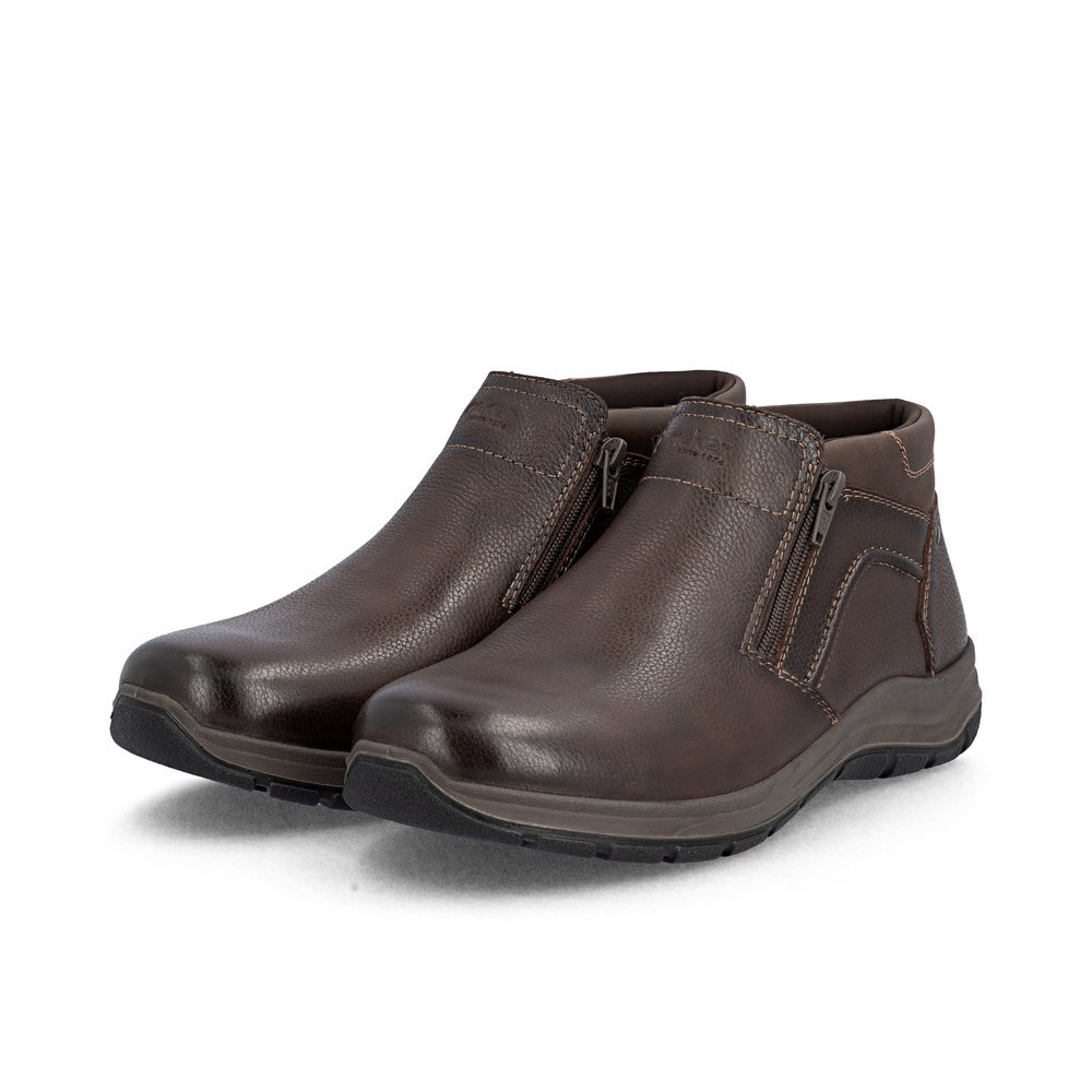 Detailní informace Pohodlné, pánské kotníkové boty, od značky Rieker, v hnědé barvě, ocení nejeden muž, který hledá styl a pohodlí. Svršek je z přírodní kůže. Díky dvěma zipům se Vám budou boty snadno obouvat. Uvnitř Vás bude hřát podšívka z pravé ovčí vlny. O pohodlí se Vám postará pohodlná stélka a kvalitní podešev s technologií Antistress.
