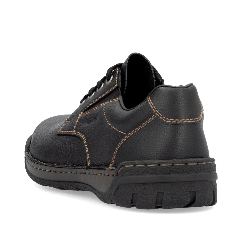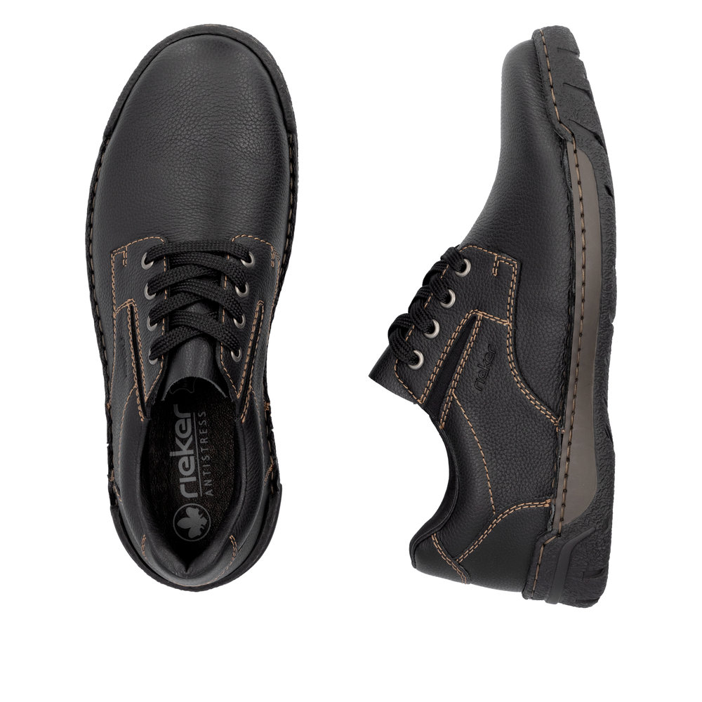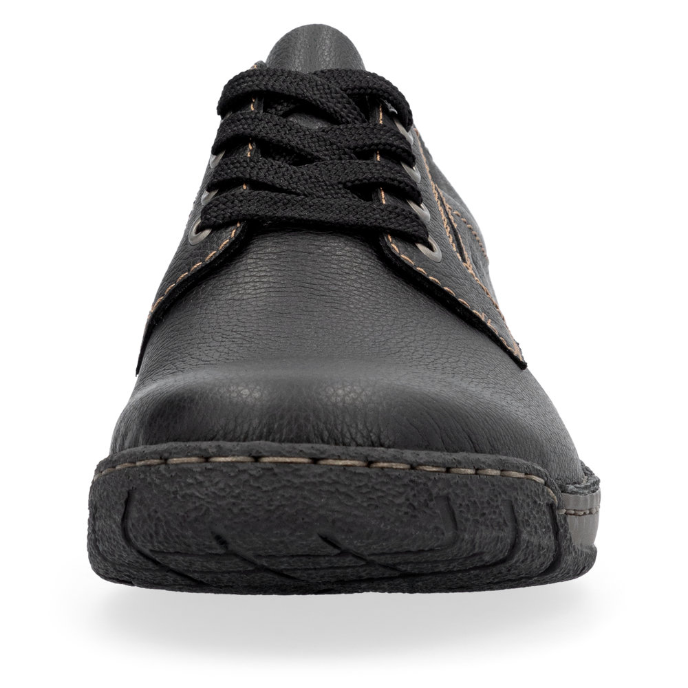 Hledáte pohodlné boty, co mají styl. Představujeme Vám tyto polobotky od značky Rieker v černé barvě. Jejich kontrastní šití zaujme na první pohled. Díky tkaničkám a vsazené pružince Vám boty dokonale padnou a přizpůsobí se tak tvaru Vašeho chodidla. Uvnitř najdete pohodlnou stélku. Komfort po celý den budete mít díky osvědčené podešvi s technologií Antistress. Technologie: Antistress - podešev je díky této technologii lehká, flexibilní, absorbuje nárazy při došlapu a snadno se přizpůsobí každé noze. Extraweit - obuv s tímto označením je určena pro široké chodidlo.