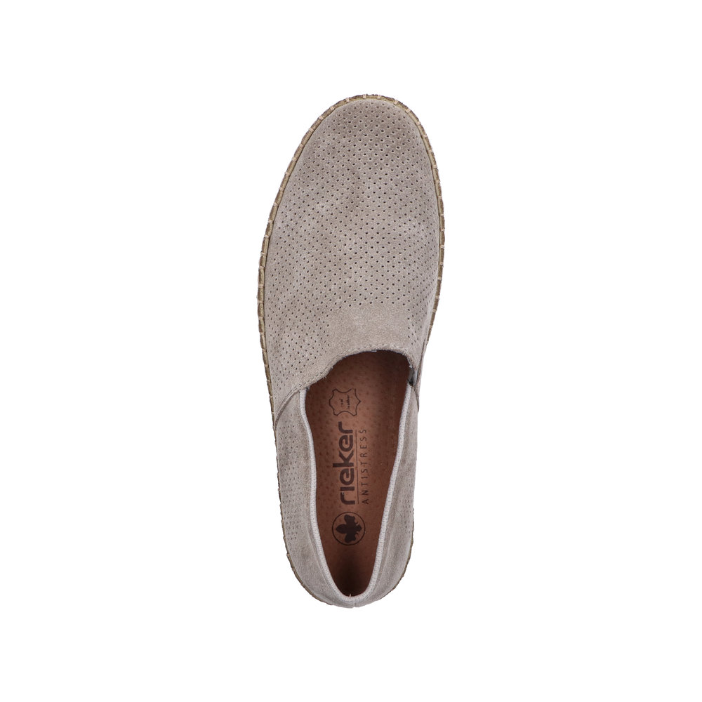 Pohodlné pánské mokasíny od značky Rieker, které si rychle zamilujete. Svrchní materiál je z broušené kůže. Po straně je všitá pružinka, která Vám usnadní obouvání a dokonale se přizpůsobí šiři Vašecho chodidla. Uvnitř najdete pohodlnou, měkkou, koženou stélku, která Vám zajistí maximální komfort po celý den chůze. Podešev je ke svršku přišita ozdobným lemem. Díky šitému způsobu výroby je obuv flexibilní, více se přizpůsobuje tvaru chodidla. Technologie: Antistress - díky této technologii je obuv lehká, flexibilní, absorbuje nárazy při došlapu a snadno se přizpůsobí každé noze.