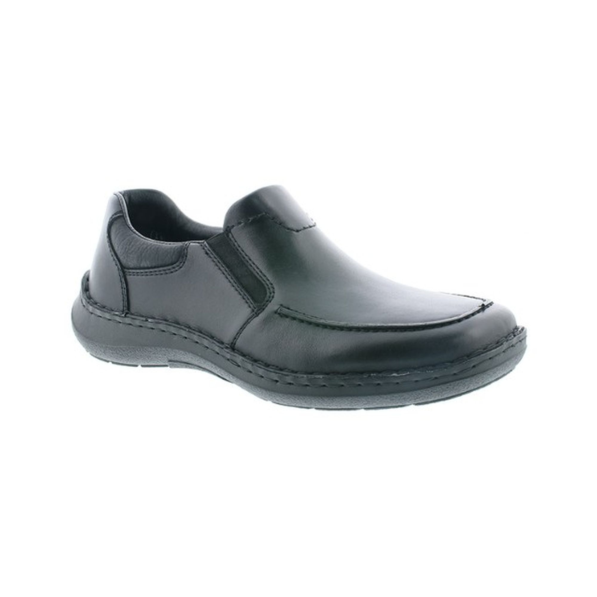 Pohodlné pánské mokasíny v černé barvě, v nadměrné šíři s kombinovaným svrškem kůže/syntetika. Obuv má na vnitřní a vnější straně nártu vsazené gumičky pro ještě větší pohodlí. Stélka obuvi je kožená. Podešev je flexibilní a vybavena technologií Antistress, která skvěle tlumí nárazy a otřesy. Technologie: Antistress - díky této technologii je obuv lehká, flexibilní, absorbuje nárazy při došlapu a snadno se přizpůsobí každé noze.
