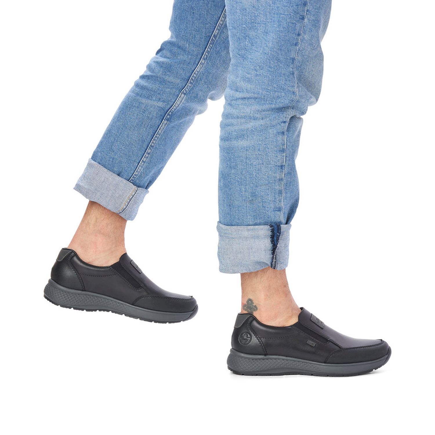Pohodlí na každém kroku budete mít s těmito pánskými mokasínami Rieker. Jsou jednoduché, přesto se nedají přehlédnout. Tyto černé boty jsou doladěny pěknou šedou podešví a logem na nártu. Pohodlí Vám zajistí stélka z paměťové pěny a flexibilní podešev, která bude kopírovat každý Váš krok. Nezaskočí Vás ani nepřiznivé počasí, protože tato obuv má texovou membránu, díky níž je obuv uvnitř suchá a vzdušná. Tyto mokasínky využijete každý den. Tento model nabízíme na našem e-shopu v další barevné kombinaci (platí do vyprodání zásob). Technologie: Antistress - podešev je díky této technologii lehká, flexibilní, absorbuje nárazy při došlapu a snadno se přizpůsobí každé noze. RiekerTEX - obuv s tímto označením je prodyšná, ale zároveň odolná vůči vodě. Je to díky zvolenému výrobnímu procesu, kdy mezi svrchní díl a podšívku je vložena goretexová membrána. Díky tomu má obuv optimální ochranu proti vlhkosti a výbornou ochranu proti chladu. Stélka za paměťové pěny.
